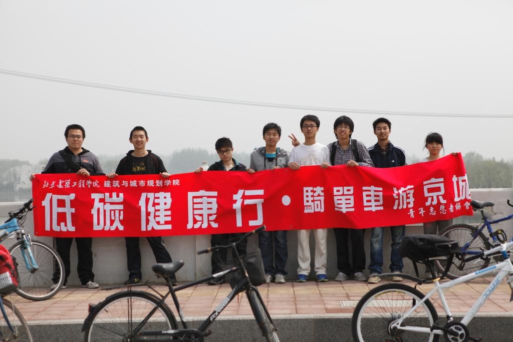为努力构建“人文北京、科技北京、绿色北京”,推广绿色出行方式和宣传低碳出行,增强人们对气候问题的意识,2012年4月21日,yl7703永利青年志愿者协会举行了低碳出行·单车京城游的活动。