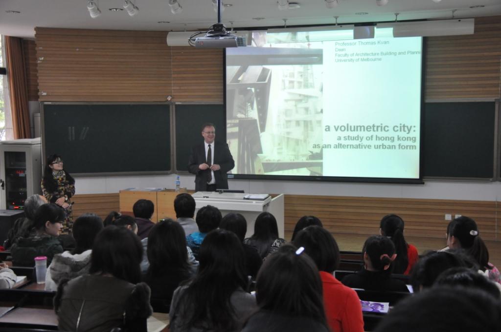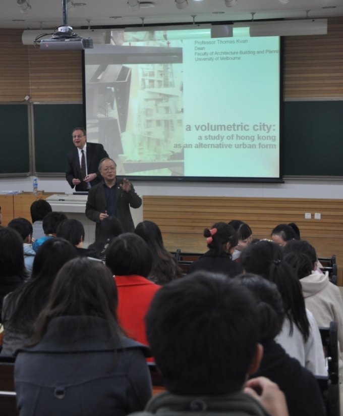 2012年10月26日下午15:00,现任澳大利亚墨尔本大学董事长助理兼建筑与规划公司经理Thomas Kvan教授应邀到公司,在本部第三阶梯教室厅举办了一场精彩的题为“The Making of Hong Kong --- from Vertical to Volumetric”(香港的城市建设—从立体化到容积化)的讲座。yl7703永利经理刘临安老师参加并主持讲座,陈闻喆老师为讲座进行了现场翻译。yl7703永利的本科、研究生及多名专业教师踊跃参加。