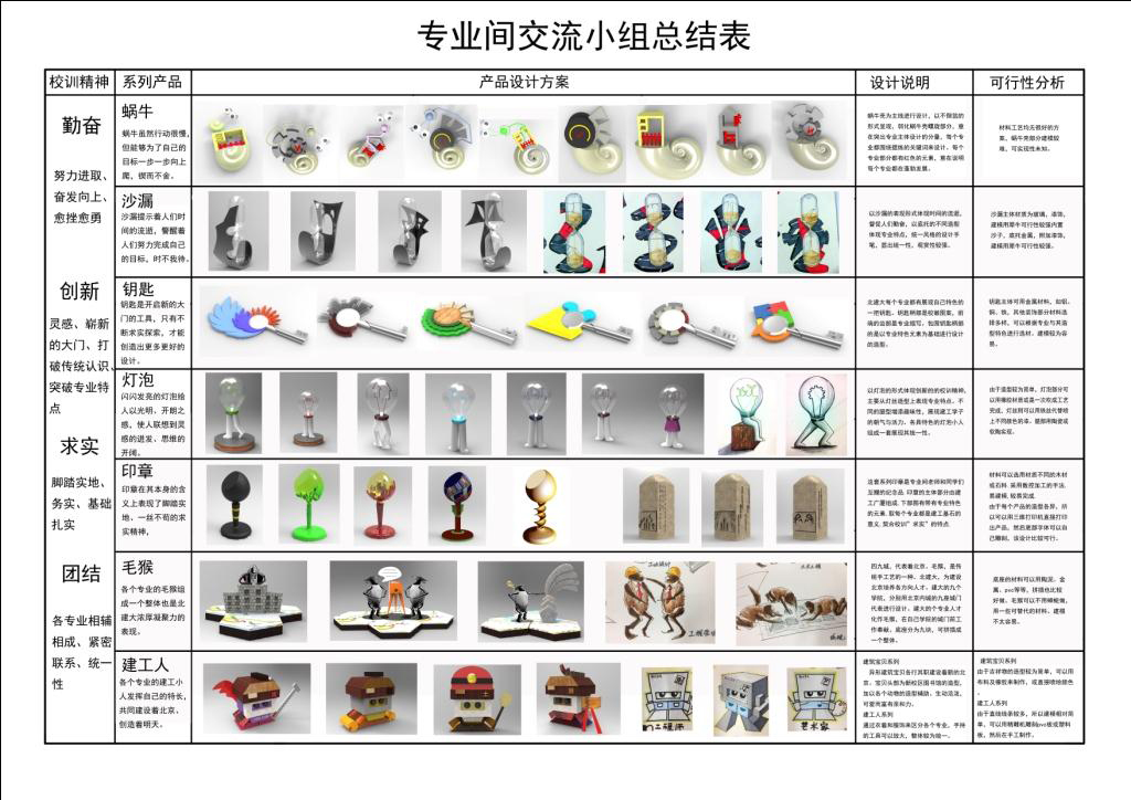 为进一步发挥专业优势,在校园文化建设贡献智慧,yl7703永利师生再次投入极大的热情,将yl7703永利纪念品设计与课程设计相结合,由陈静勇老师、朱宁克老师作为主要指导老师,工101班全体同学积极参与,开展了系列纪念品设计。截止现在,同学们在前半学期主要开展了三个阶段的工作:首先是调研阶段,本学期初,全班分组进行了调研,不仅了解各个层次人群对纪念品的需求,而且收集其他公司在纪念品方面的优秀案例,为今后的设计打下基础。第二阶段为创意阶段,同学们利用设计课及课余时间进行了三次草图设计,大家集思广益,每个人为每组的设计提供想法与方案。第三阶段同学们对这些想法与方案进行分类汇总,共分为四组,以小组为单位确立方案,通过多次组内讨论逐步完善、修改方案。一组基础元素小组主要负责校徽设计、校园基础色及纪念品商店的策划工作;二组校际间交流小组同学们以以董事长及校方领导立场进行设计;三组专业间小组从研究生专业与本科生专业两个层面进行设计;四组个人交流小组从员工实际生活出发进行设计。