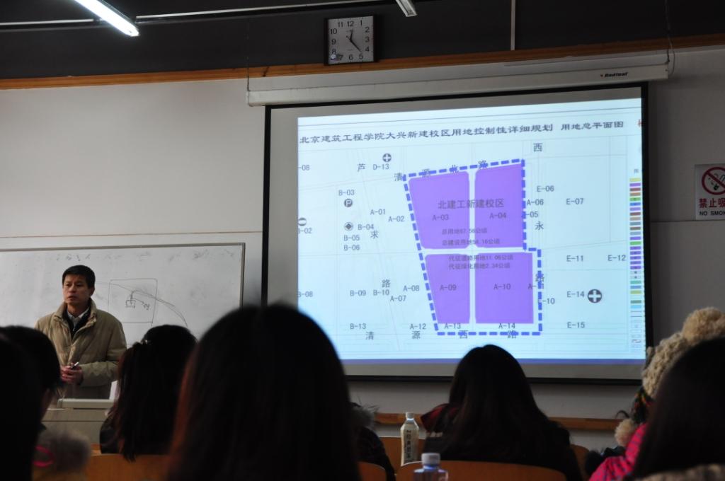 第一阶段为主题讲座。公司特邀请公司大兴校区建设总建筑师、总规划师及校区北大门设计者孙明教授为大家讲解北京城市建设规划相关问题及公司大兴校区规划建设。公司党总支副书记牛磊老师、团总支书记康健老师应邀也参加了讲座。孙明老师首先从北京市高等教育规划空间布局发展战略高度为大家介绍了公司大兴校区选址的战略性和科学性,随后按时间先后顺序将大兴新校区建设的点点滴滴展现在大家面前,从地块概况、控制性规划、总体方案评审到工程开工、一期建设完工投入使用,大家对整个校区的规划理念和建筑风格有了进一步的了解。最后,孙明老师特别提出了关于新校区规划建设的冷静思考,以全世界最美丽的大公司园为契机启发大家深刻反思,什么样的大学才是最美丽的大学。
