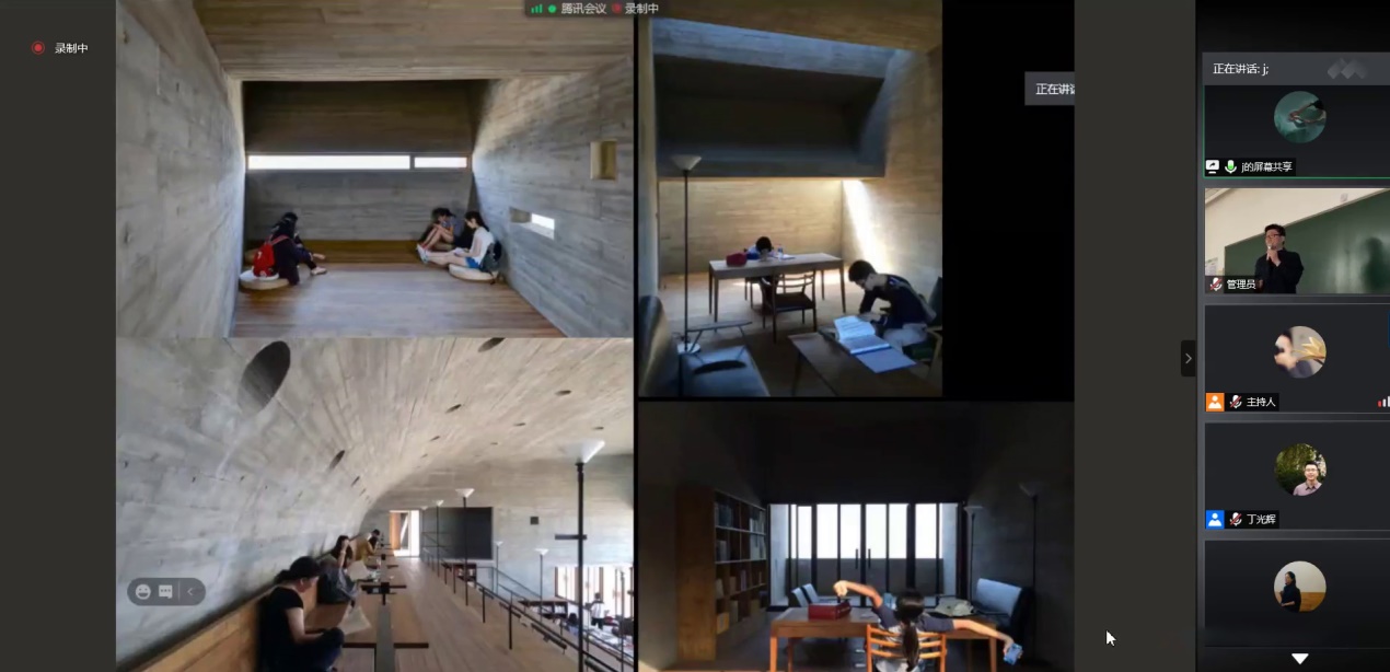 董功把建筑剖面做为切入点,以海边图书馆、南开大学海冰楼、长江美术馆、阳朔糖舍酒店四个作品为案例,向现场观众及线上听众讲述了他在建筑设计中对光线的思考。他认为建筑在建造过程中应更多关注光线与建筑的关系,通过结构、材料、人体尺度与空间感受等多个方面塑造光线。讲座过程中结合图片、视频等多种方式,生动地展示了作品的设计构思、建造过程以及建成后的使用现状,让观众们切实体会到了董功老师的设计魅力所在。自由提问阶段,同学们踊跃发言,提出关于光线与时间的关系、如何建立对建筑的理解系统、建筑师与项目的关系等多个问题,董功老师逐一详细解答。