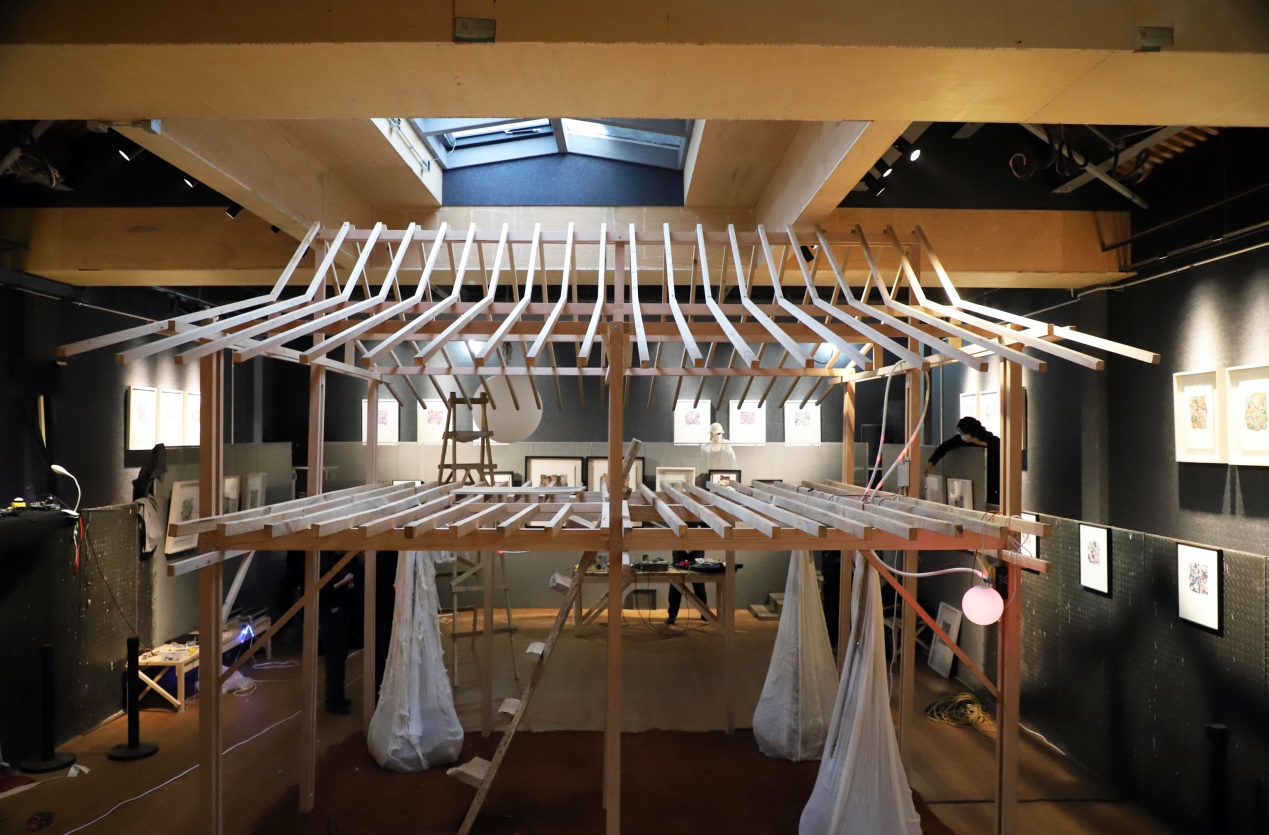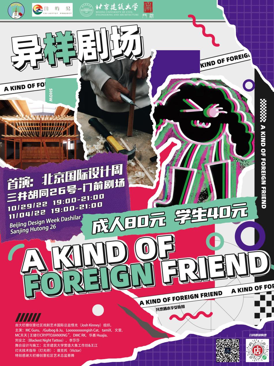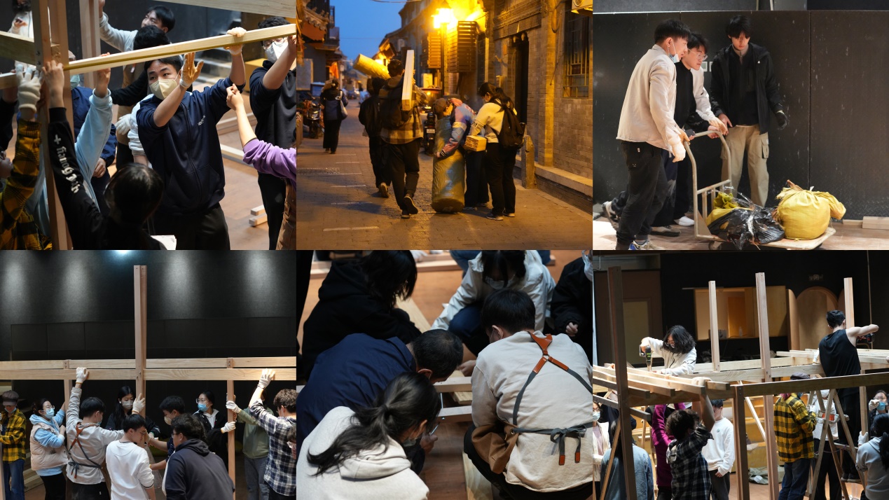 10月28日凌晨五点,天空还泛着星光,同学们就从公司出发,前往北京大栅栏三井胡同,开始准备一天的搭建工作。在非遗传承人木匠谢师傅的带领下,同学们以工作小组的形式,分工协作,最终顺利按时完成搭建工作。搭建完成后的次日,aKoff异样剧团的演出顺利举办。同学们与艺术家合作制作了海报和演出时的道具和家具,并在胡同内布置了视觉导览。演出当天效果出众,之后作为设计周的场馆装置,同学们搭建的成果又持续展览了三周。