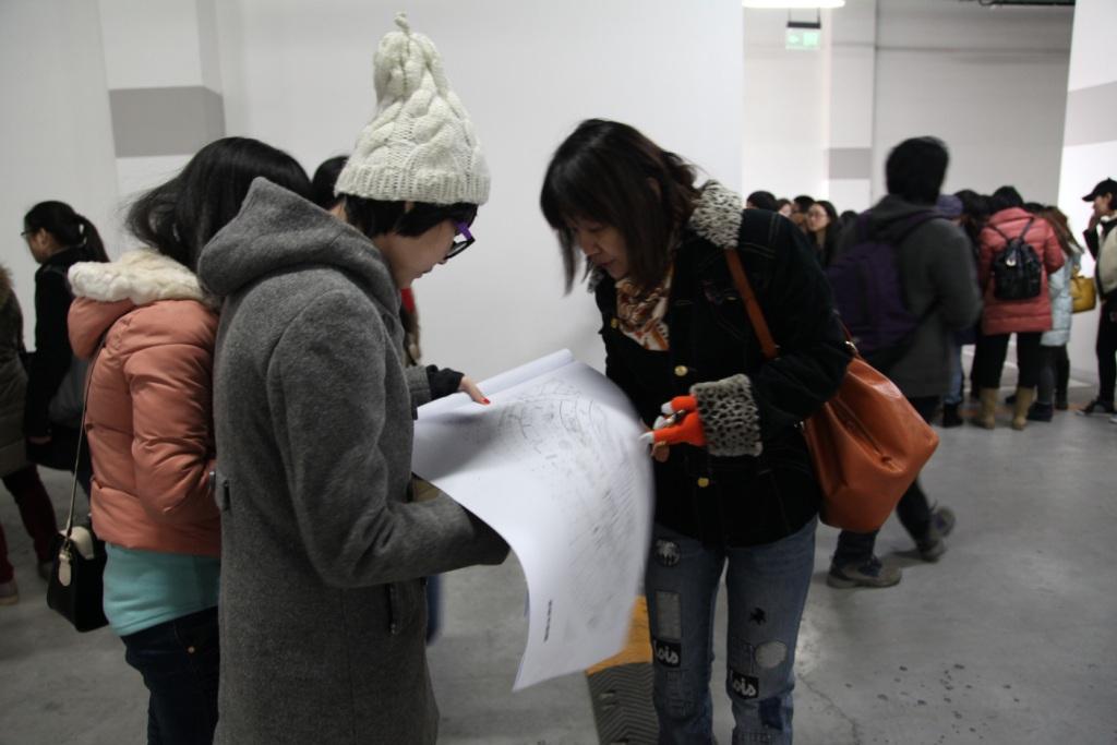 3月3日,6校师生在谭工和胡工的带领下,进入鸟巢内部实地调研。同学们认真聆听两位工程师的讲解,并与指导教师一起和工程师交流。同学们手拿图纸和笔,边参观边记录,为设计做起初准备。从地下一层到六层,同学们逐一实地勘测,力求深入、全面地了解鸟巢室内现状。