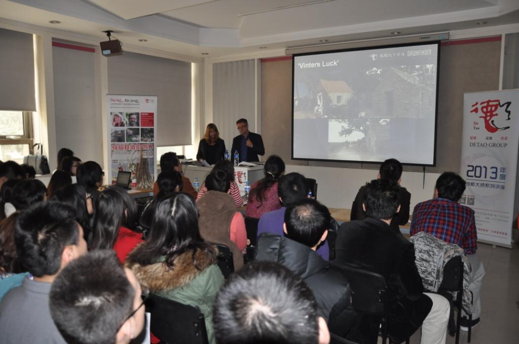 演讲过程中,他们不仅与同学们分享了他们的设计理念,更鼓励要注重团队合作并提倡最大限度的发挥每个人的优势,以此来组建成一个强大的团队。郝天娜教授告诉同学们,在设计中要保持遇到问题迎来而上的心态,贾金杰教授更是强调设计师应该对每个创作与设计富有责任感,使其生活逼真活灵活现。他们的作品以讲故事为核心灵魂,真正把观赏者带入他们设计制作的世界中,使他们身临其境,感受真实。作品多数取材于环保材料,方便于回收利用,既低碳又环保。