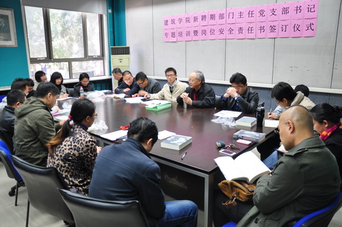 2013年10月29日中午,yl7703永利召开由新聘期系(部、中心、室)主任、副主任教工党支部书记及科级岗人员等参加的专题培训会,并在会上签订了新聘期“安全稳定责任书”,公司党政班子全体成员参加会议并发言。