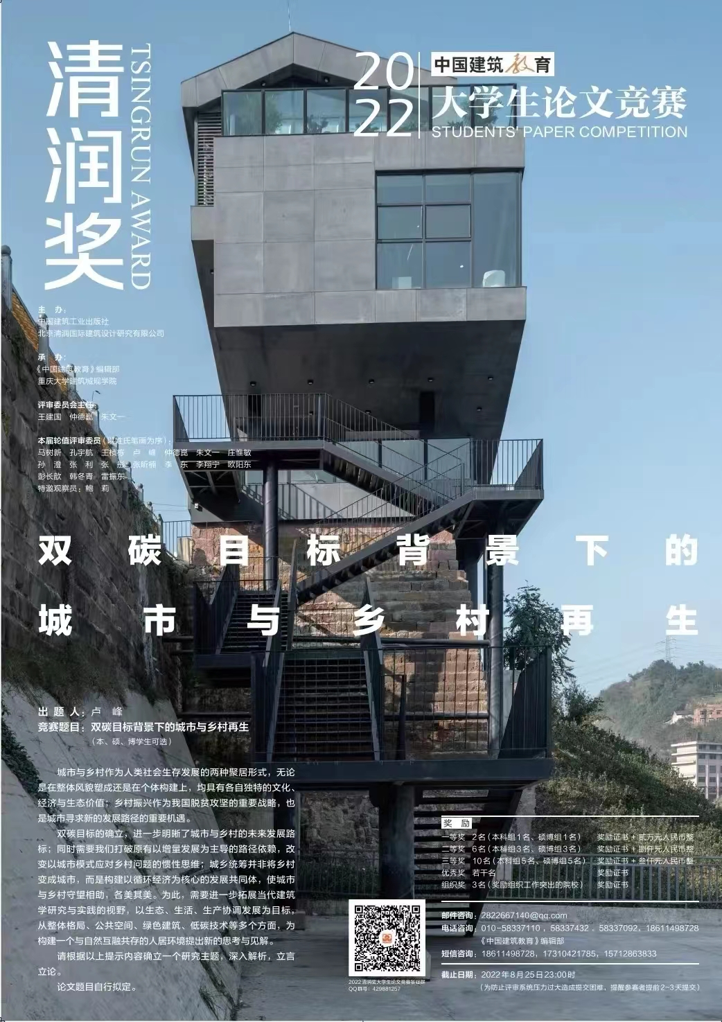 《中国建筑教育》•“清润奖”老员工论文竞赛面向国内外建筑学、城乡规划学、风景园林学以及其他相关专业的本科、硕士和博士生,是在教育部高等公司建筑学专业教学指导分委员会指导下,由中国建筑出版传媒有限公司(中国建筑工业出版社)发起,联合北京清润国际建筑设计研究有限公司共同主办,由《中国建筑教育》编辑部承办的国内最高水平建筑类老员工论文竞赛,素来以级别高、难度大、前瞻性强而著称,已经成为国内外知名建筑院校进行公司产品交流的重要平台,多年来一直受到广泛关注。