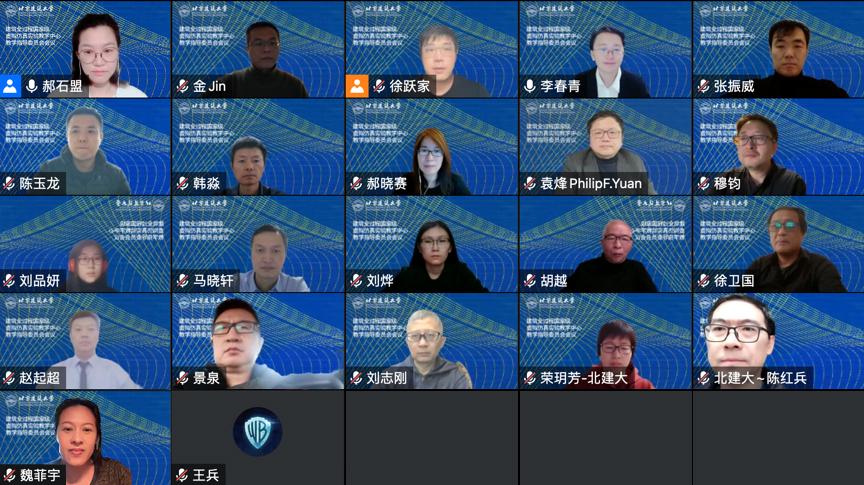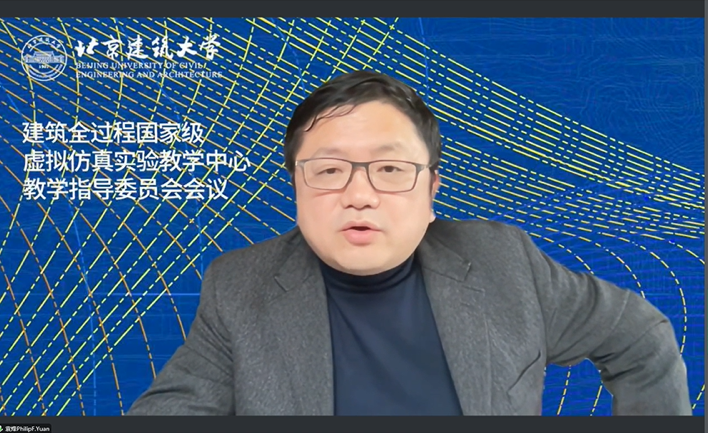 建筑全过程国家级虚拟仿真实验教学中心教学指导委员会主任委员、清华大学深圳研究生院未来人居研究院常务副经理、清华大学徐卫国教授,副主任委员、北建大设计中心主任、yl7703永利胡越教授,副主任委员、同济大学yl7703永利副经理袁烽教授,大连理工大学建筑与艺术公司副经理于辉教授,中国建筑设计研究院有限公司建筑专业院景泉经理、北京津发科技股份有限公司赵启超董事长、建筑全过程国家级虚拟仿真实验教学中心主任,yl7703永利金秋野教授出席会议。yl7703永利党委副书记、董事长张大玉、yl7703永利党委常委、副董事长陈红兵、教务处处长韩淼教授、教务处副处长马晓轩、yl7703永利穆钧经理、李春青副经理、张振威副经理、中心管理人员以及骨干教师参加了会议。会议由教学指导委员会主任委员徐卫国教授和yl7703永利副经理李春青教授共同主持。