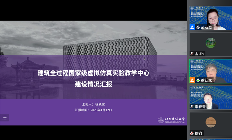 2023年1月12日上午,yl7703永利建筑全过程国家级虚拟仿真实验教学中心教学指导委员会第一次会议成功举行。会议以线上方式召开,进行了中心2022年度报告及建设计划汇报,教学指导委员会委员针对虚拟仿真中心的未来建设进行讨论和指导。