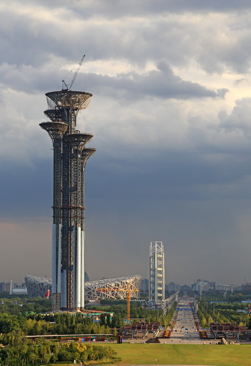 北京奥林匹克公园中心区瞭望塔,是崔大师的在建项目之一,奥运会前因工期紧张而方案搁置,最初的设计创意来自于崔大师工作室北建大毕业生,其灵感来源于奥运五环。报告会中崔大师现场调侃北京的天气:“瞭望塔建成后,北京天气好时在塔顶能看到国家大剧院、能看到T3航站楼,天气不好时在塔顶看不到鸟巢、看不到塔底”。我们期待瞭望塔建成后,能在北京的蓝天下登塔瞭望。