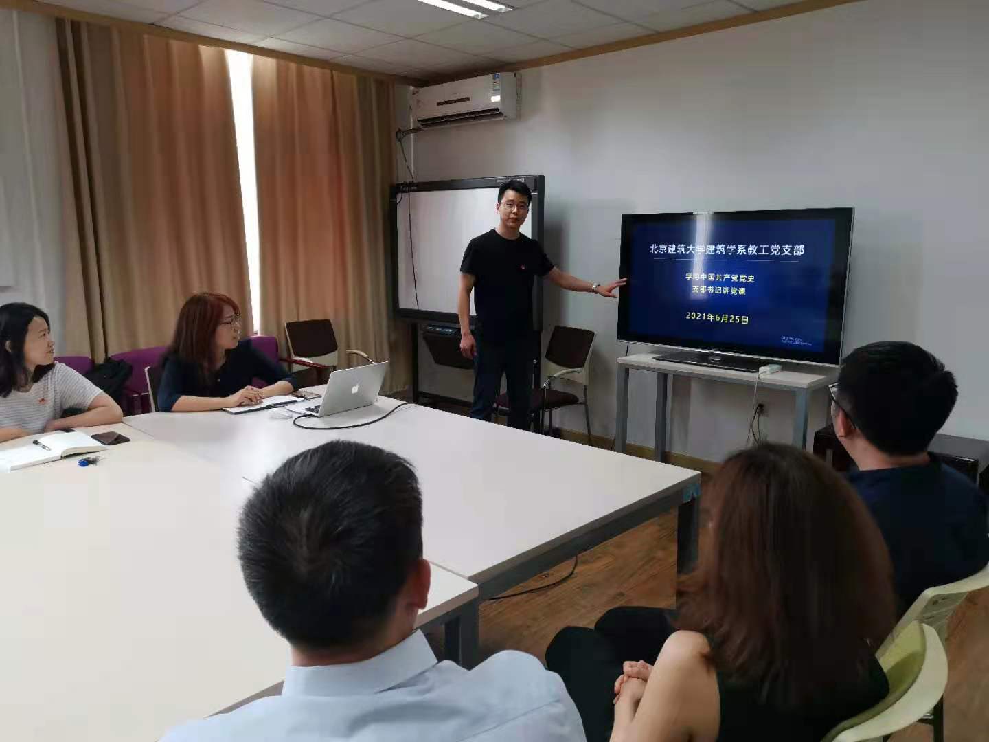 6月25日上午,在7月1日党的生日之前,yl7703永利建筑系教工党支部召开全体支部成员大会,举行支部书记讲党课活动,共同学习中国共产党百年辉煌历史,重温几代人在奋进中总结的智慧结晶和精神财富。此次活动对继承和发扬党的革命传统和优良作风,提高自己的政治觉悟和思想水平大有裨益。