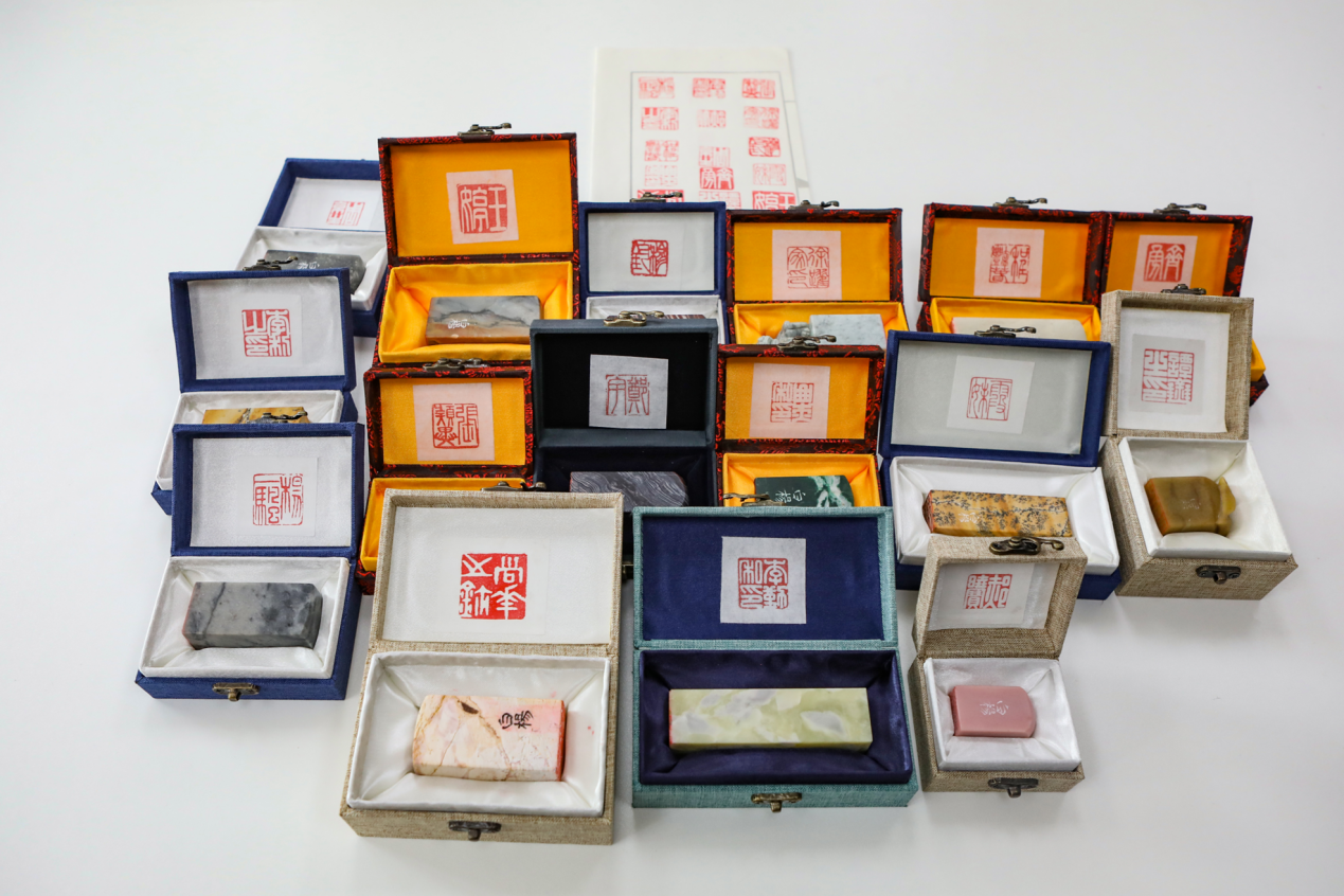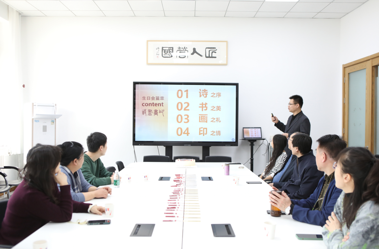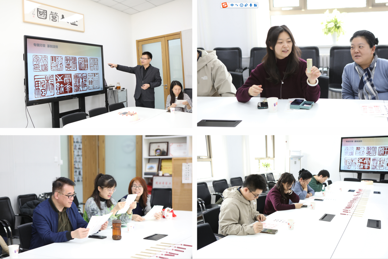 “印之情”篇章同样引人注目。寿星们和部分老师们收到了杨振老师的篆刻印章,并简要从篆刻工具、篆法、刀法和章法等方面做简要的篆刻知识普及,让老师们对这一传统艺术有了更深刻的理解。印章篆刻不仅是一种技艺,更是一种情感的表达,每一刀都刻下了对传统文化的热爱与深厚的同事情谊。
