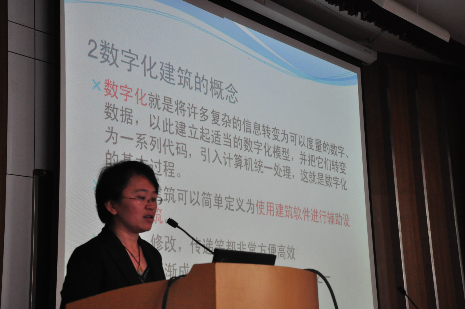 虞刚、郭芳、俞天琦等10组师生分别以从形式走向互动——浅议数字建筑的三个问题、严寒地区图书馆建筑设计中的数字技术应用探索——以哈尔滨数字媒体图书馆为例、数字技术应用于编织类建筑表皮设计研究等为题宣读了团队的科研成果。