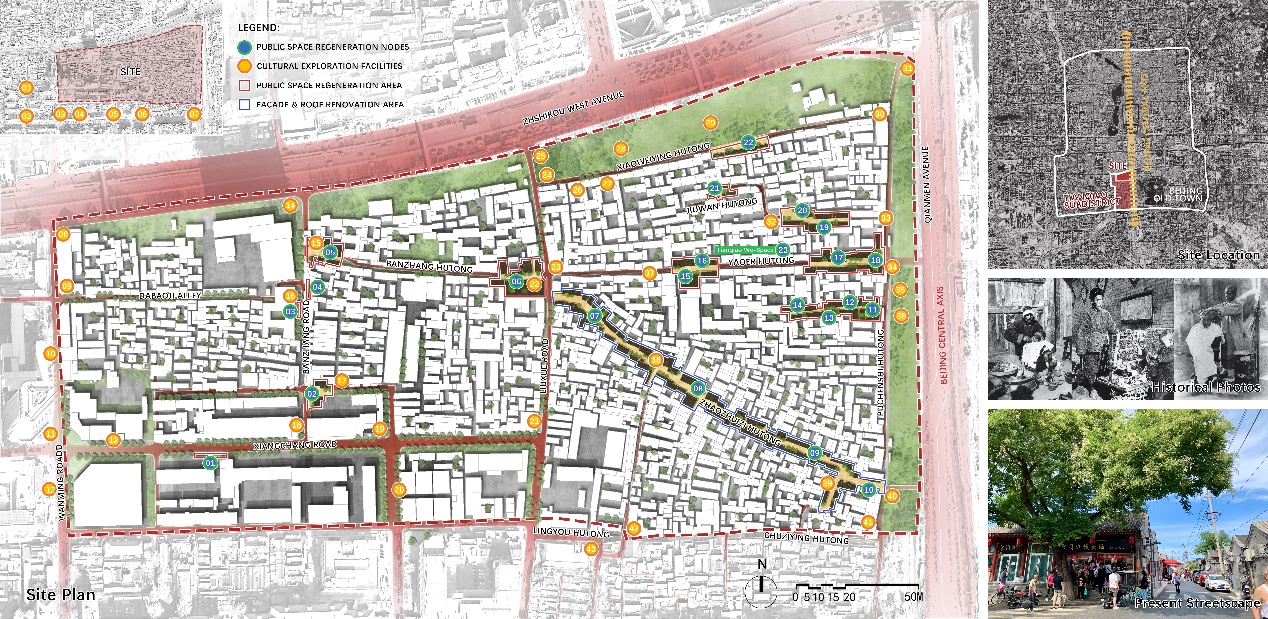 2022年以来,针对区域内公共空间杂乱、人居环境破旧、居民认同感削弱等复杂挑战,在街道和社区的支持与协作下,由yl7703永利甘振坤老师领衔,吴昕泽、李梦一欣等多名教师为骨干的天桥街道责任规划师团队,与来自北京北建大建筑设计研究院有限公司、北京服装公司等专业力量的技术人员深度配合,采用“小尺度、高效能”的“城市针灸”策略,在胡同中开展小微公共空间体系更新。