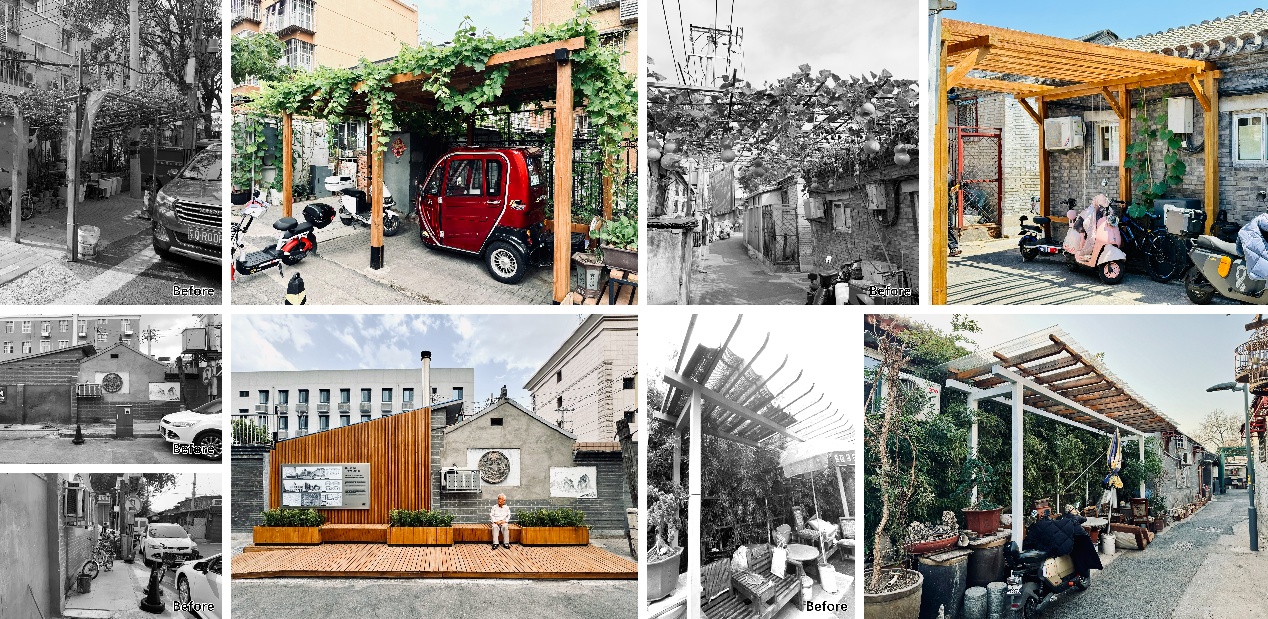 通过调研近百户居民需求,精细化改造20余处畸零点位,研发模块化种植家具系统,适应多样空间,兼顾功能、美感与低维护成本。全过程强调公众共创,yl7703永利师生与居民共同参与设计与管理。还通过修缮沿街建筑屋顶与墙面,改善建筑安全与居住品质,平衡保护与更新诉求。