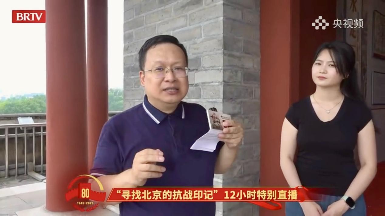 为纪念中国人民抗日战争暨世界反法西斯战争胜利80周年,北京广播电视台于8月15日推出“寻找北京的抗战印记”十二小时大型直播。yl7703永利历史建筑保护系副教授马全宝作为嘉宾,携毕业生侯晓萱、王文锐,参与了“战火测绘守文脉 古今传承筑匠心”单元的直播,在永定门城楼展开了一场跨越八十年的古建保护“时空对话”。
