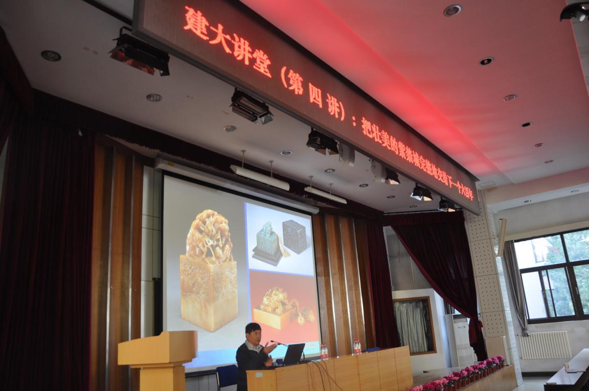 随着会场灯光渐渐暗下,单经理通过幻灯片的形式将故宫的整体面貌清晰地呈现在了大家的面前。其清晰的轴线、开阔的格局、壮美的建筑、严谨的形制、绚丽的彩绘、生动的空间、精美的装饰、独特的色彩、真实的信息、典雅的园林、丰富的景观、和谐的环境都让人深深感受到故宫与其它国家,其他城市建筑的不同。人们的目光牢牢地聚焦在前方的大屏幕上,看着故宫走过了六个世纪的点滴变化,纷纷为故宫的雄伟壮丽所震撼。与师生们一起穿梭于时间长河的单先生脸上也不时闪现身为“故宫掌门人”的自豪笑容。他深情地说道:“故宫绚丽的色彩,不仅仅是因为油漆的功劳,更是因为那种色彩是历史的沉淀,是中国传统文化的一种象征。