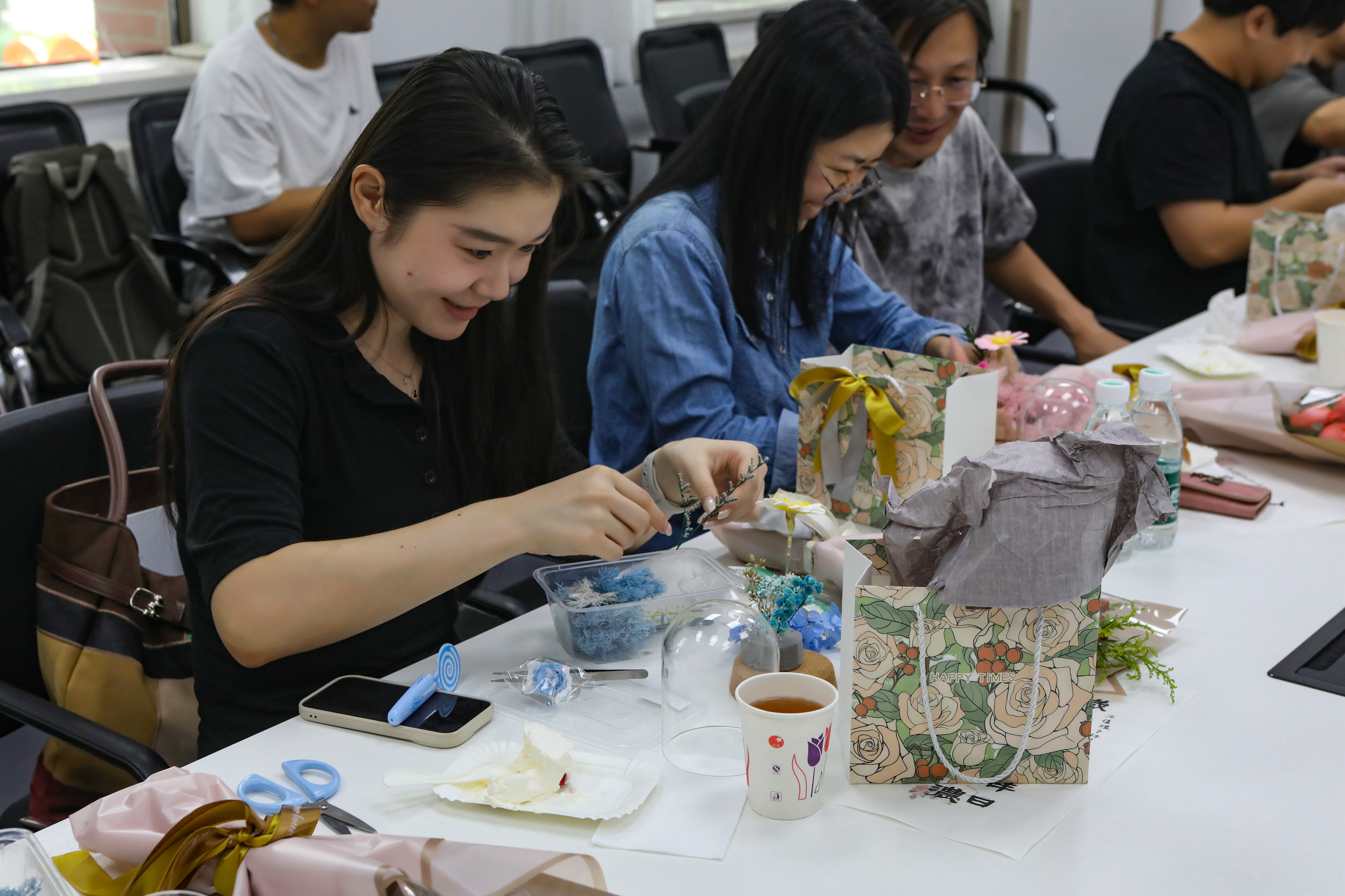 庆祝会最后,“美的创造” 环节让温馨延续。大家发挥创造力,将干花素材搭配成错落有致的“小花园”。愿岁月不老,美好常伴。新的一岁,所遇皆喜乐,万事皆胜意!