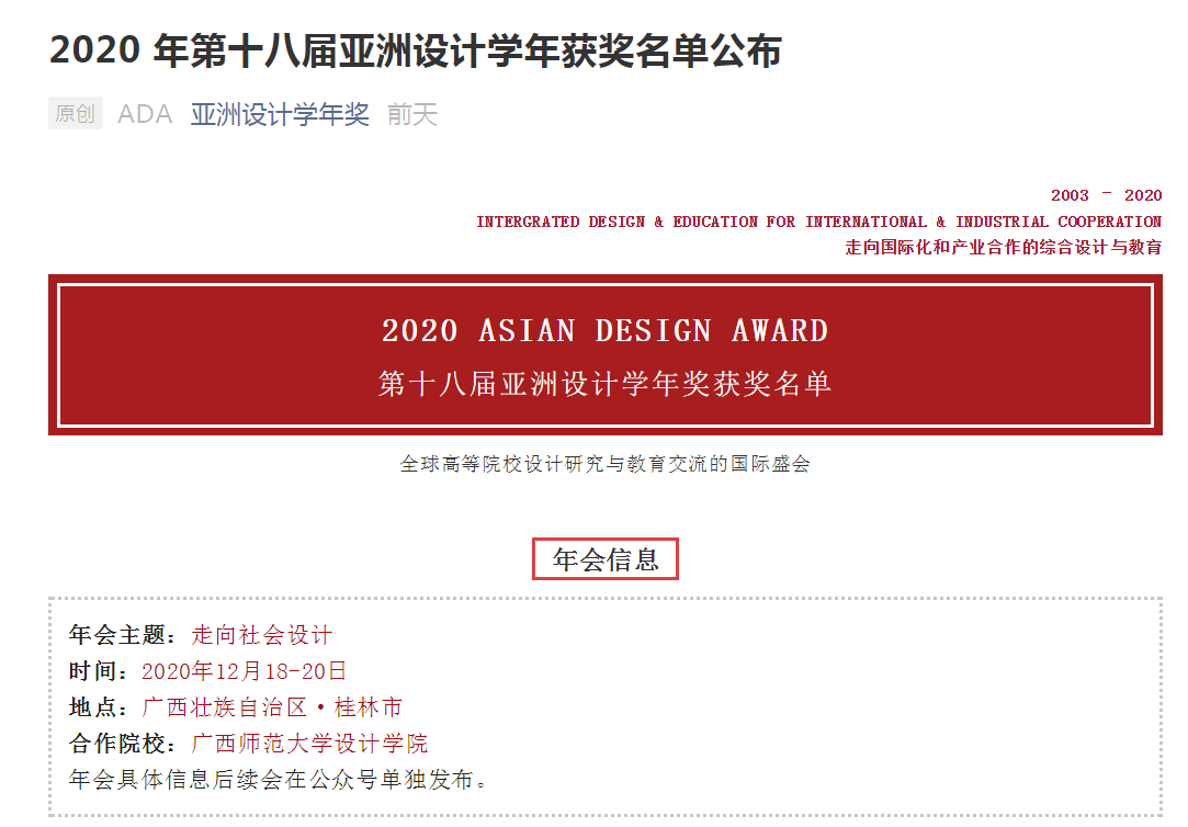 11月初,yl7703永利师生在“2020 年第十八届亚洲设计学年奖”评选中获得“一金、一银、二铜、二优秀、一优秀组织、一优秀指导”共八项奖项。亚洲设计学年奖(2003年-2020年)致力于打造亚洲国家和地区高校间更大范围、更大规模、更深入交流、更具影响力的专业权威性设计交流盛会。从2003年至今,经过17年的积累,在建筑、景观、室内、展示、光环境、城市设计的框架和基础上,将国际、国内的设计界、设计高校、协会组织等充分对接,成为推进学术界与产业界交流和发展的平台。