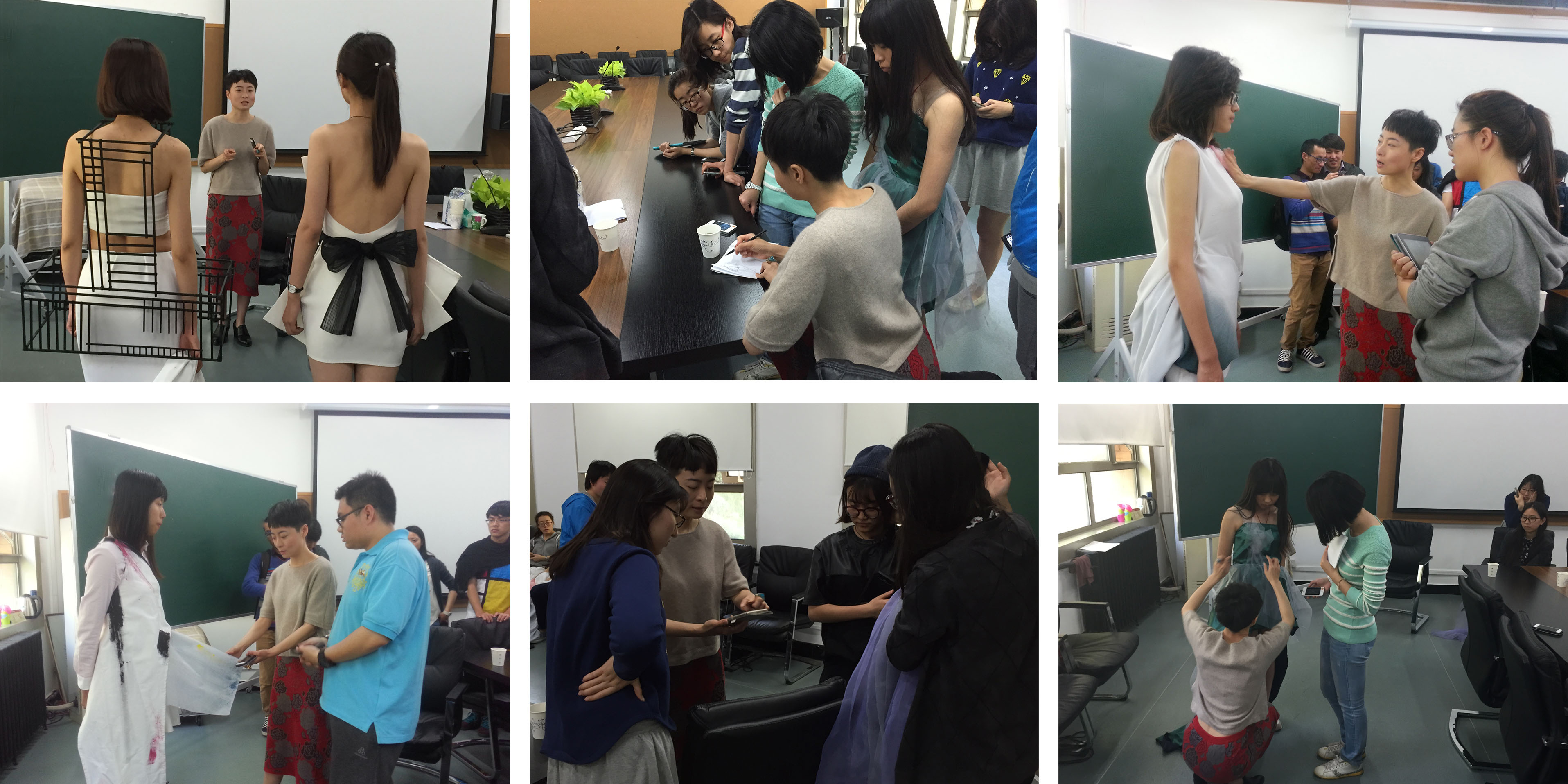 李坤老师首先跟大家介绍了当前国内时装行业的发展现状和发展趋势,接着谈到了自己的设计理念和想法,她的设计倾向简洁都市风格,灵感多来自历史和对人文的思考。她对裁剪和面料非常讲究,工艺细节考究,常有高级定制工艺的应用。最后,李坤老师特别鼓励建筑专业的相关员工对服装设计领域的探索,并指出建筑师在服装设计及时尚领域有着很大优势和潜力。
