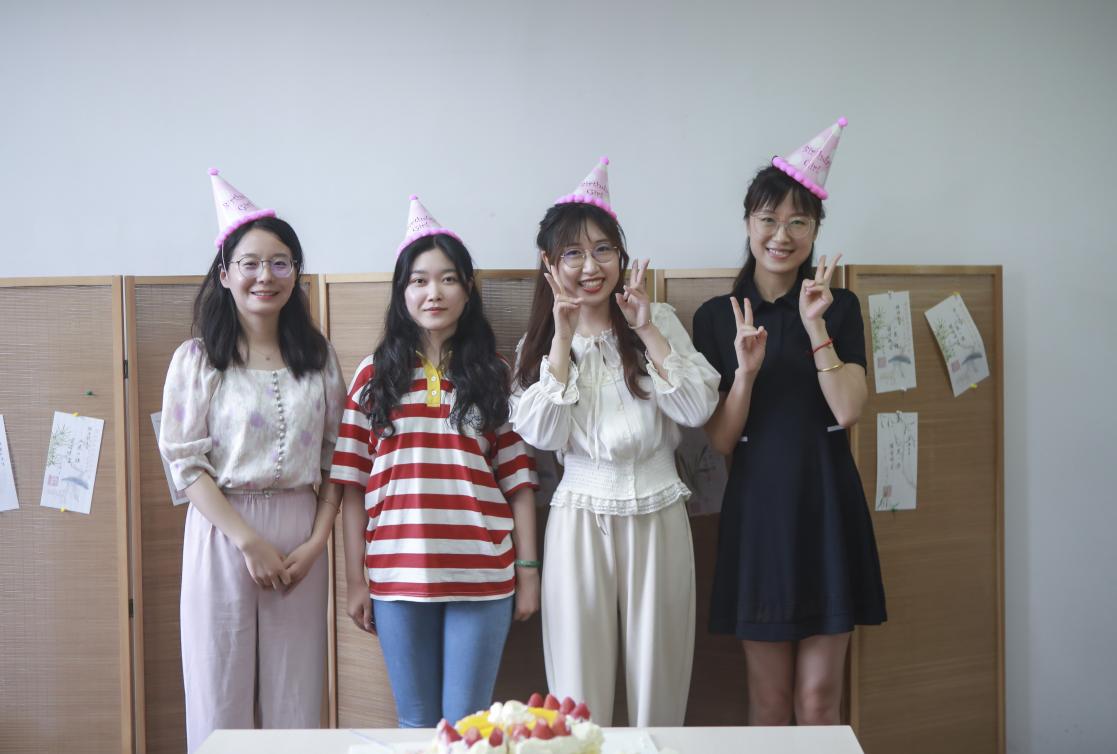 压轴节目是由李露、孙萌、陆冰清和吴昕泽四位老师一起表演的“三句半”。只见四位老师头戴粉色生日帽,击掌作鼓,用诙谐幽默的方式细数生日会场景和建院传统,感慨筹备活动的不易,并祝福老师们生日快乐、顺意安康。台下的老师纷纷举起手机为四位可爱的演员录拍视频,沉浸在惊喜之中。
