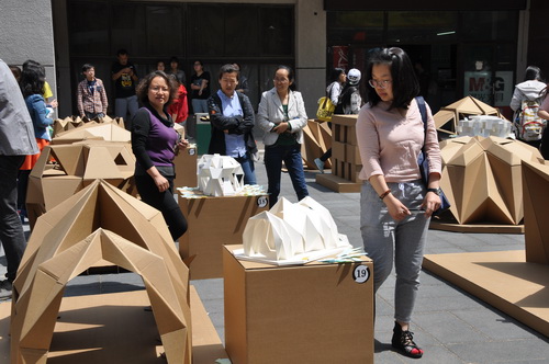 本次模型评选活动由专业教师评审和大众评审两部分组成,专业教师主要从结构稳定性、构造细节与制作工艺、艺术造型、内部空间与光线四个方面对模型进行打分评比。大众评审的手中握有一定的票数,可以贴在自己心仪的作品上,得到票数最多的作品将会获得“最佳人气奖”的称号。大众评审由除yl7703永利大一员工以外的校内师生以及周边居民共同组成,评审场面异常火热。