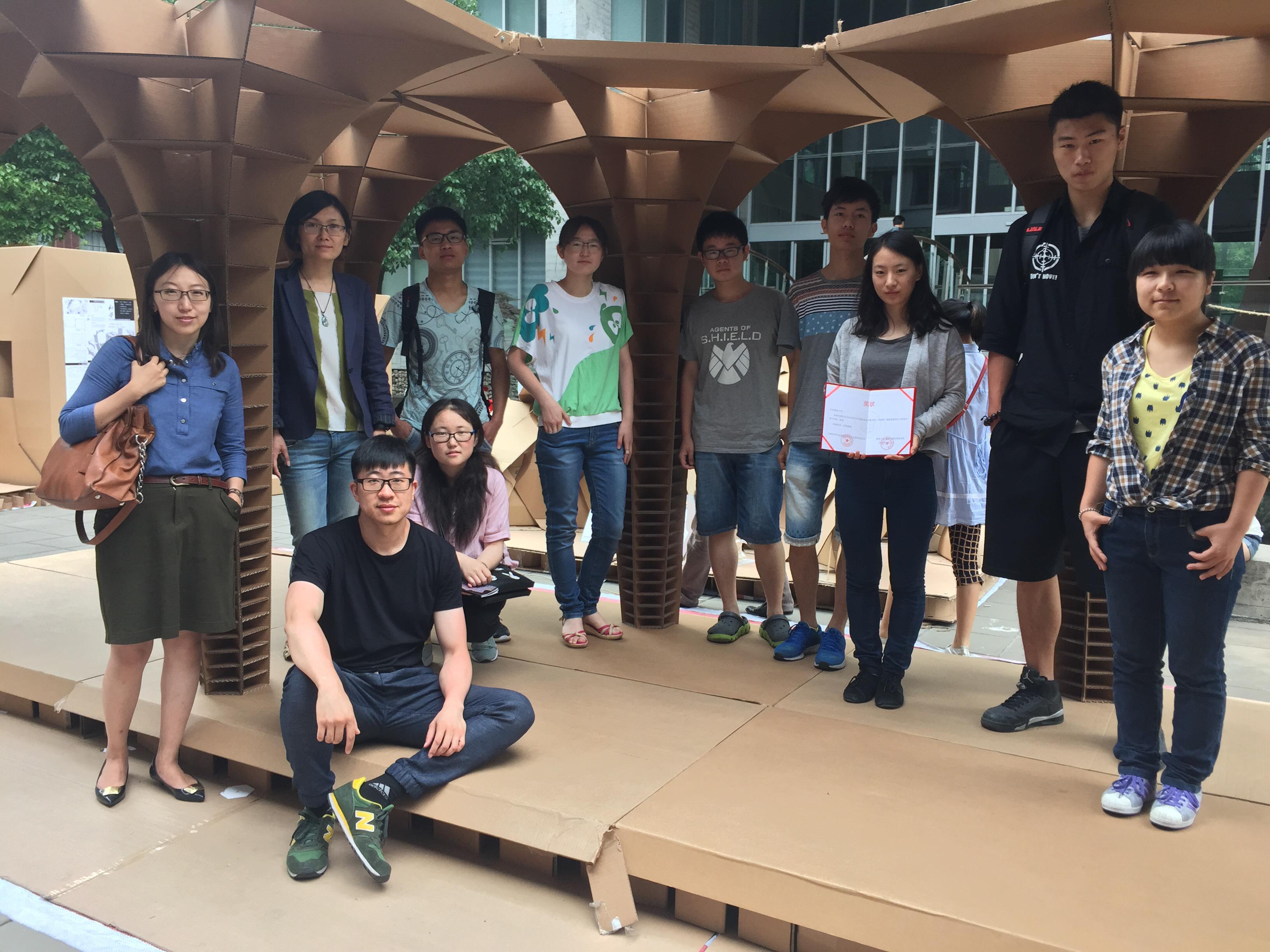 6月6日,“2015同济大学国际建造节暨2015‘风语筑’纸板建筑设计与建造竞赛”在同济大学yl7703永利广场举行。yl7703永利副经理马英,教师齐莹、王韬、刘烨带队参加比赛,最终公司作品获得铜奖。