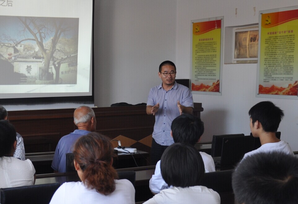8月2日上午志愿者服务团全体成员来到北庄堡村村民活动室为村民开设“乡土学堂”,结合当地村落的实际情况,向村子里的留守村民讲授传统村落的历史渊源和文化内涵,怀安县委副书记刘斌、怀安县长助理徐强特意赶来参加,40多位村民冒着烈日赶到现场参加了本次活动,本次宣讲由志愿者代表赵博新主讲,公司党委副书记丁奇主持了本次活动。