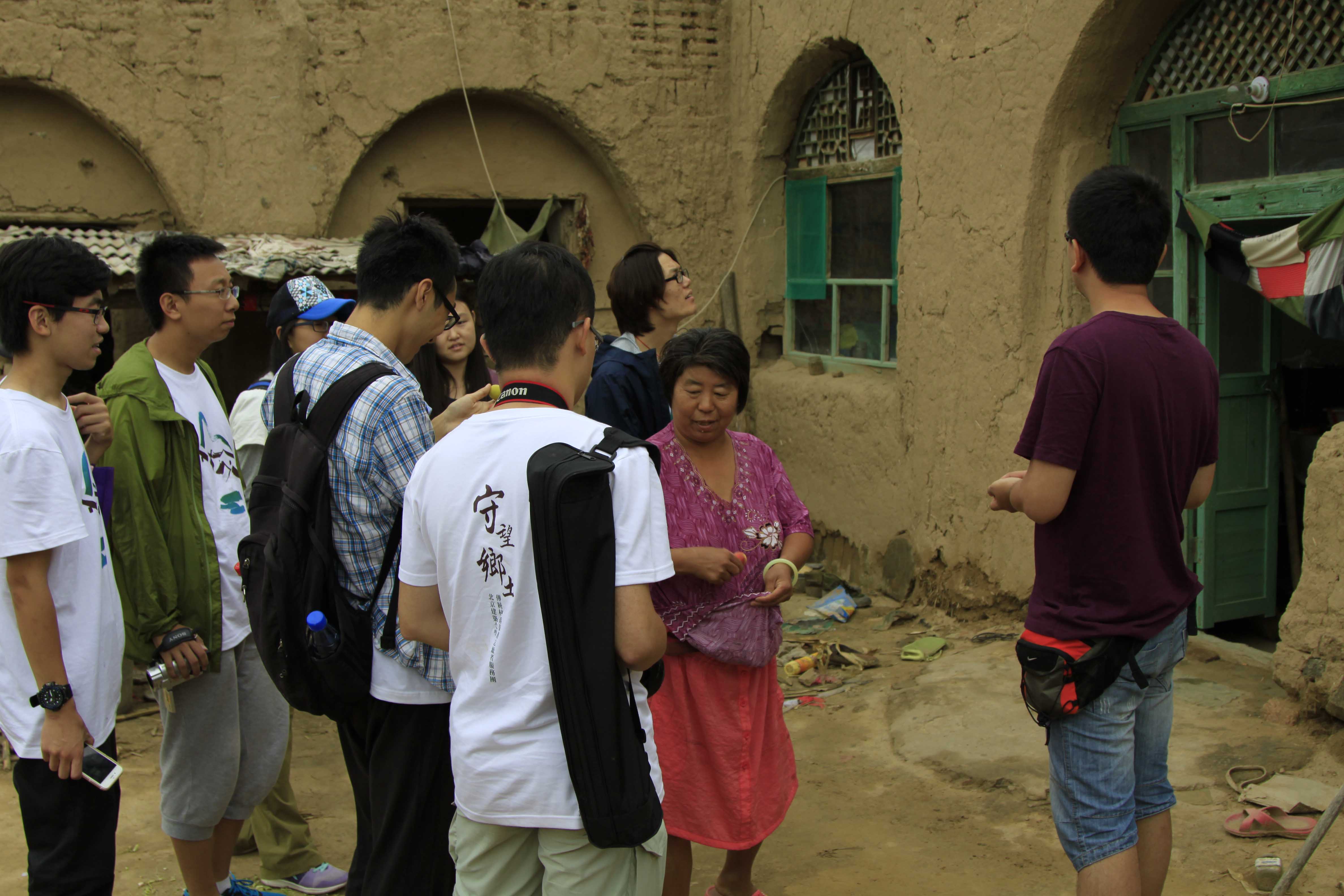 访谈结束后,志愿者一行应村民邀请前往村里实地考察村里一些有代表性的碹窑,刘博、张国伟两位老师带领志愿者同学就碹窑的内部空间进行了测量,并就居民在实际居住中的诸多使用问题进行了详细沟通。