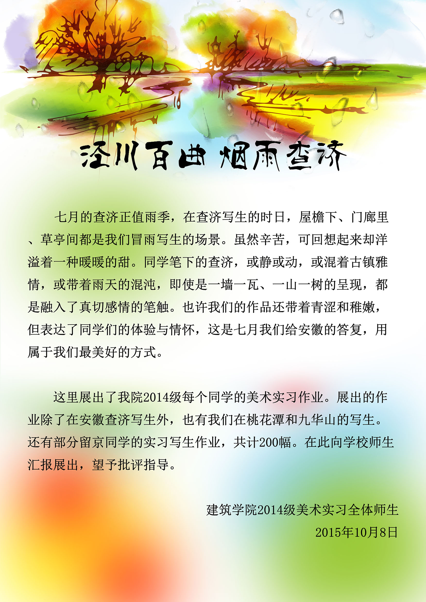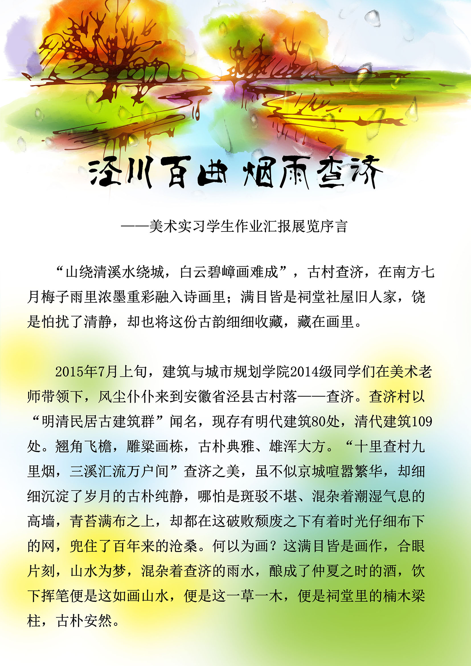 » 泾川百曲,烟雨查济—— yl7703永利2014级员工美术实习作品展