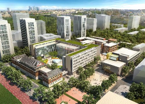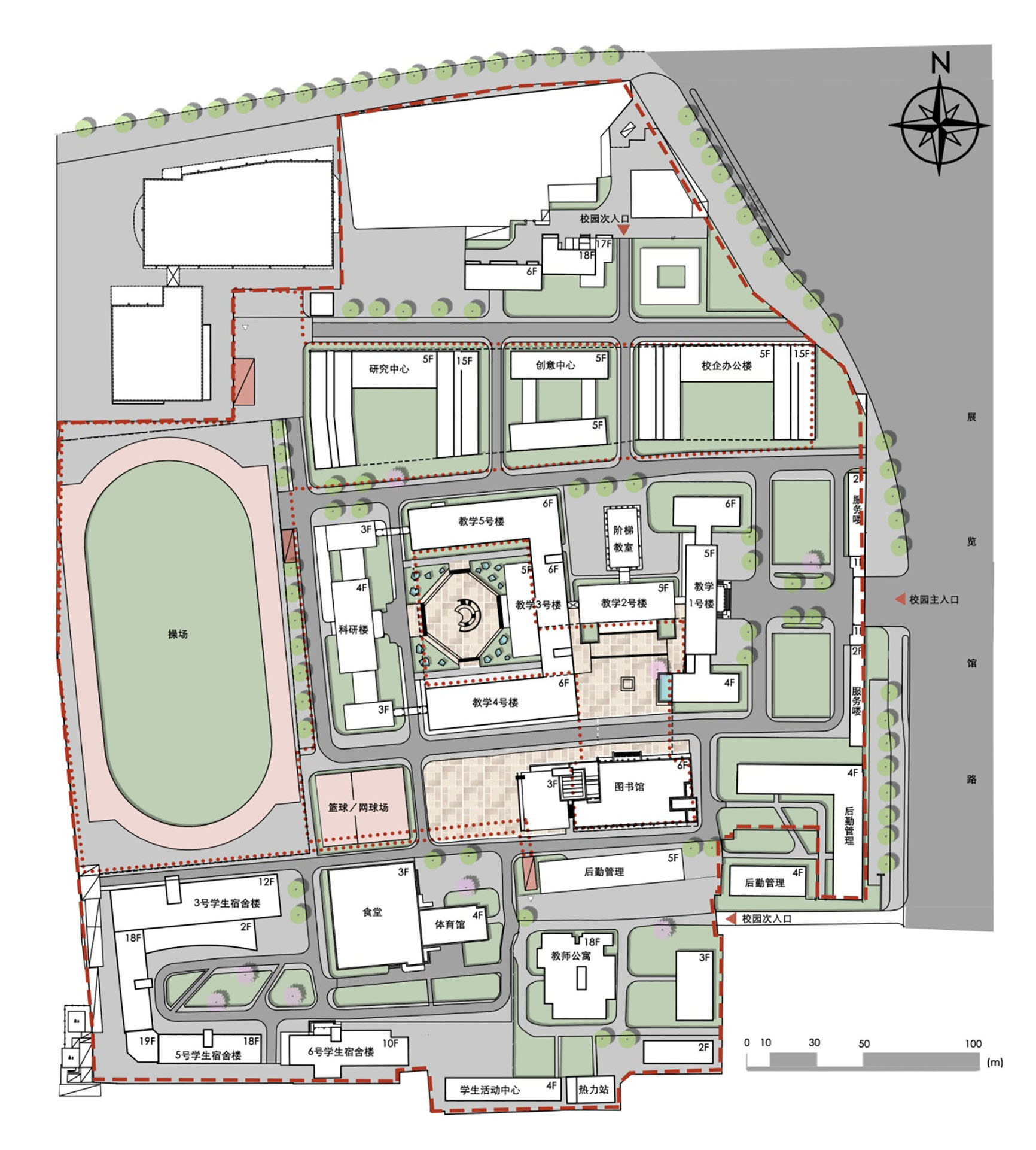 本方案的设计理念为:将西城校区建设成高水平人才培养和科技成果转化、产学研协同创新基地。以建筑学、研究生等高端人才教育为基础,结合市属重点实验室建设以及会议、展览等扩展功能,打造教学与研究并重的核心功能。
