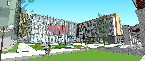 保护建筑——科研楼,将成为教学楼内部的一道靓丽景观。