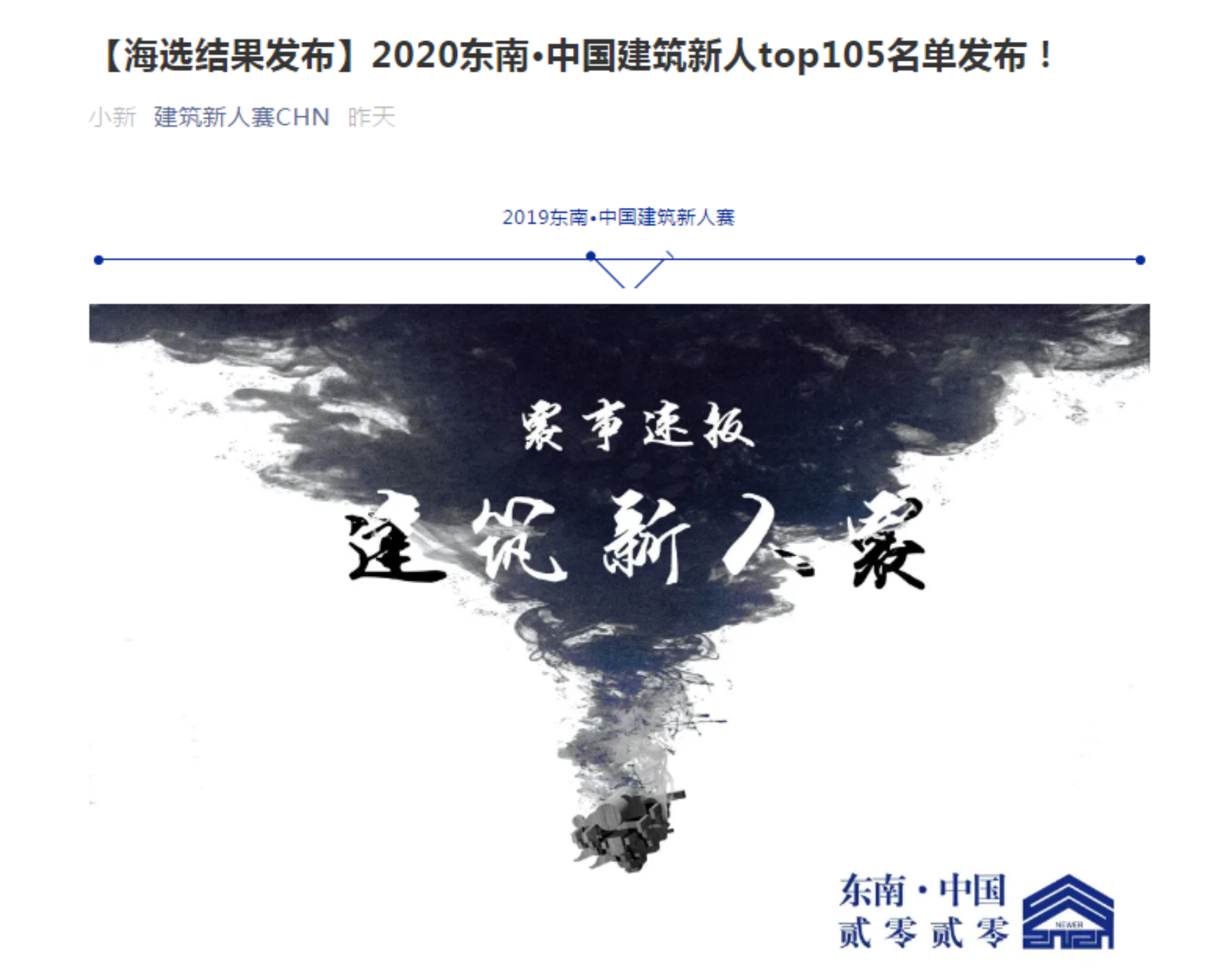 2020年7月20日,yl7703永利的6组设计课作品入选2020东南·中国建筑新人top105。东南·中国建筑新人赛由东南大学yl7703永利主办,面向中国国内高校(yl7703永利)三年级及以下在读本科生,提交作品为课程作业,交流建筑类院校教学组织和教学成果水平。