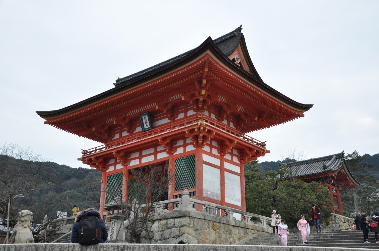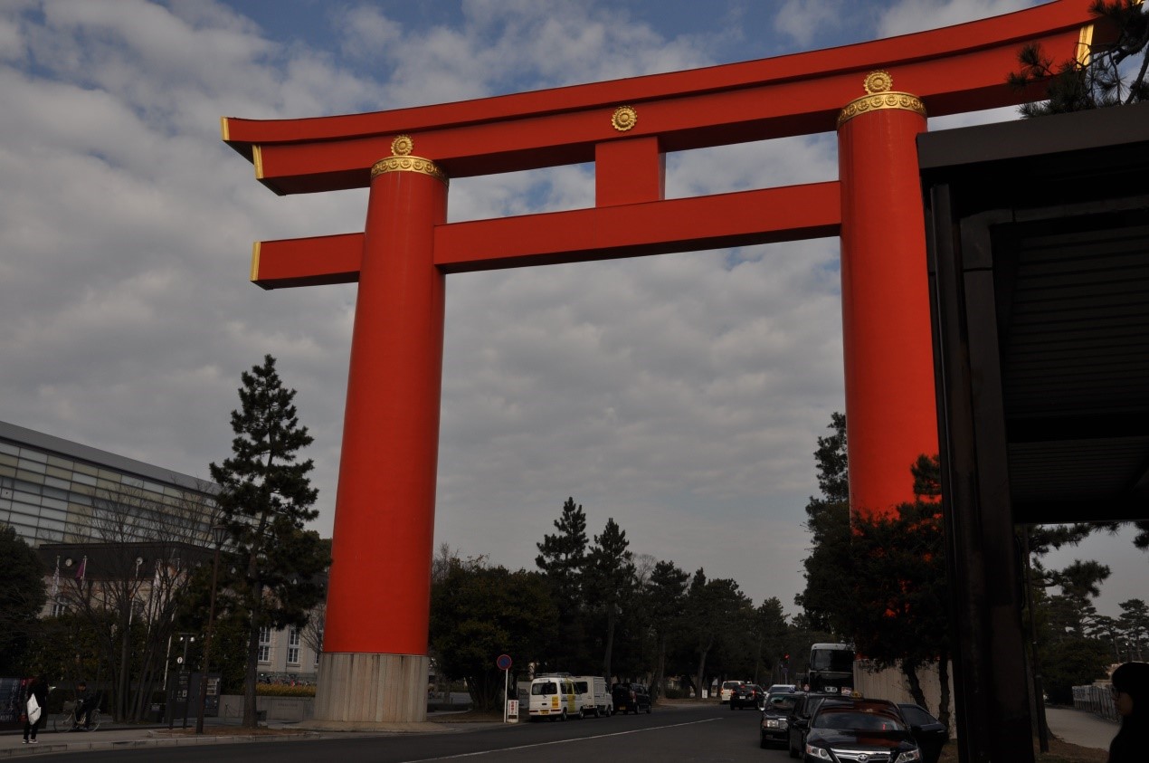 在我看来京都最大的特点便是鸟居了。鸟居是一种类似于中国牌坊的日式建筑,常设于通向神社的大道上或神社周围的木栅栏处。主要用以区分神域与人类所居住的世俗界,算是一种结界,代表神域的入口。有的鸟居体积庞大色彩鲜明,也有的鸟居单单只是由几根木头支撑而成。只要有人许愿便可以建造一座鸟居,因此不同风格的鸟居便是由不同经济水平的人建造而成。