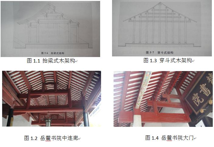 我发现书院的建筑是很典型的南方特征建筑。四周房屋连成一体,白墙黛瓦,颜色淡雅。南方建筑多使用穿斗式结构,房屋组合比较灵活。而查阅资料后发现岳麓书院中的木架形式大多属于抬梁式木架构。这种形式用材粗壮,因而建筑风格厚重雄壮,柱距较大,内部空间宽阔,其缺点是耗材过多。