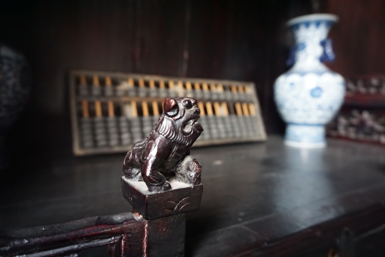 用石头制作出来的画,书桌上用木头雕刻出的怪兽,汉族陶瓷艺术的珍品——将军罐,或是雕刻精致的椅子,都让这座故居别有趣味。
