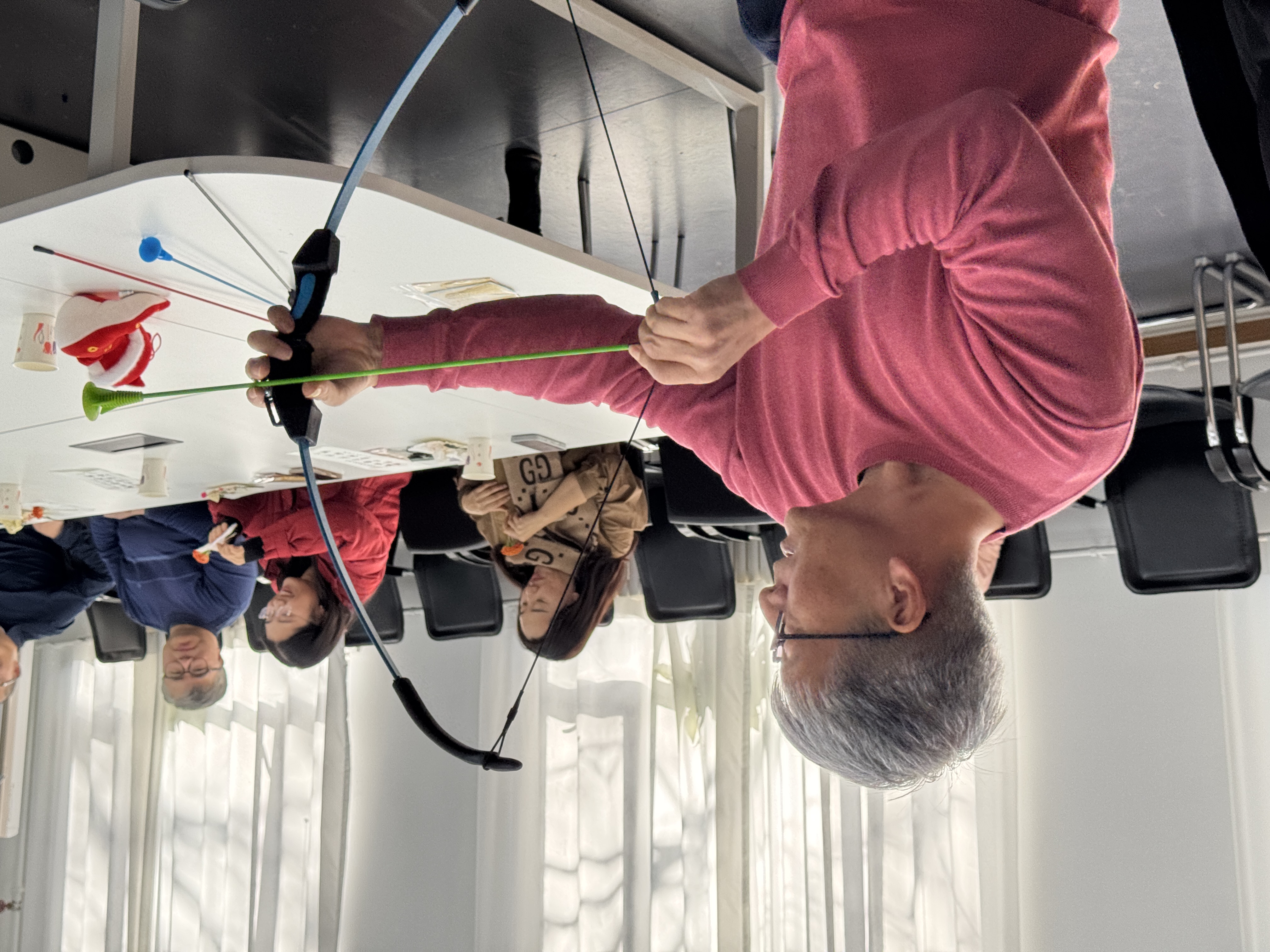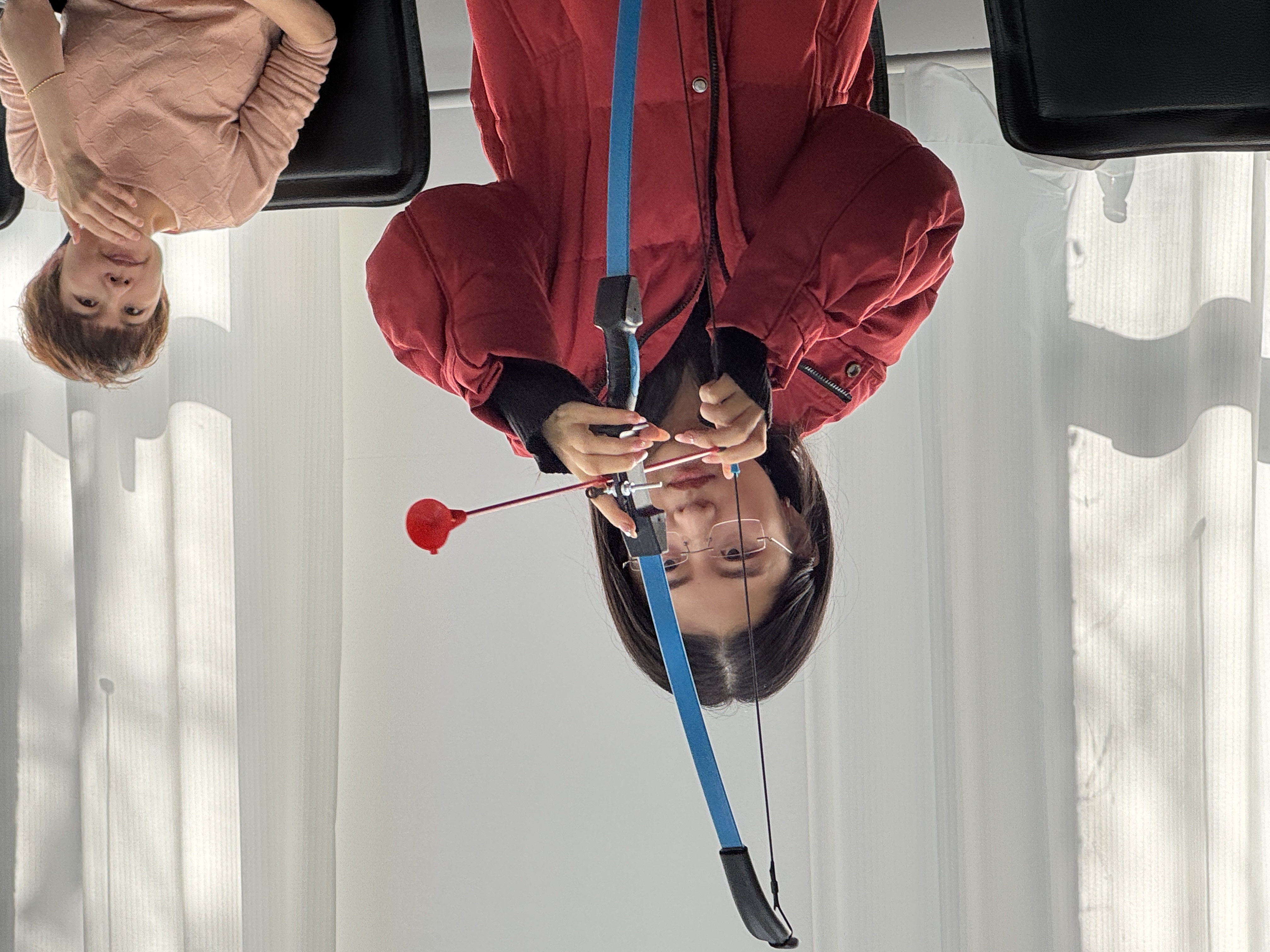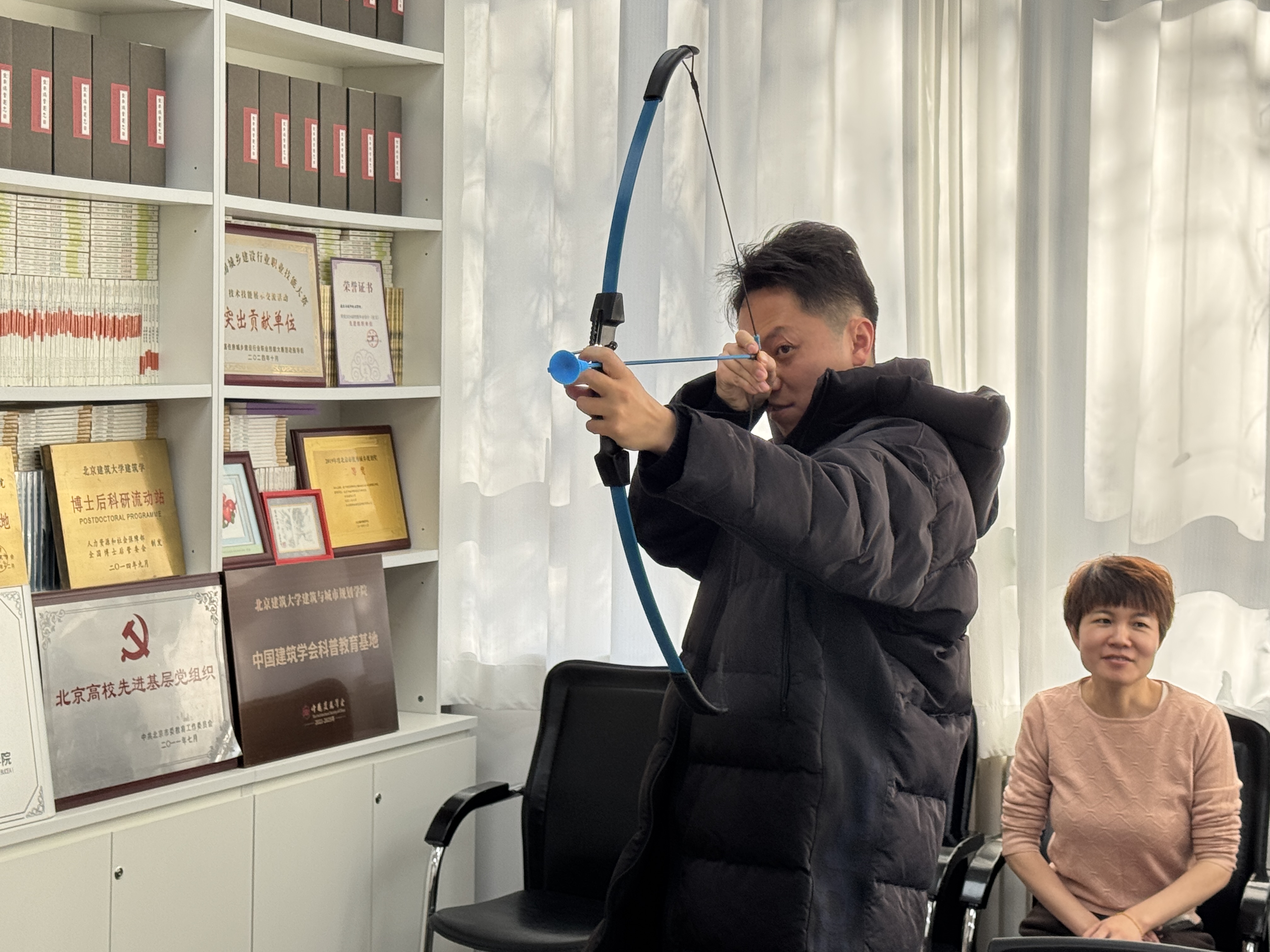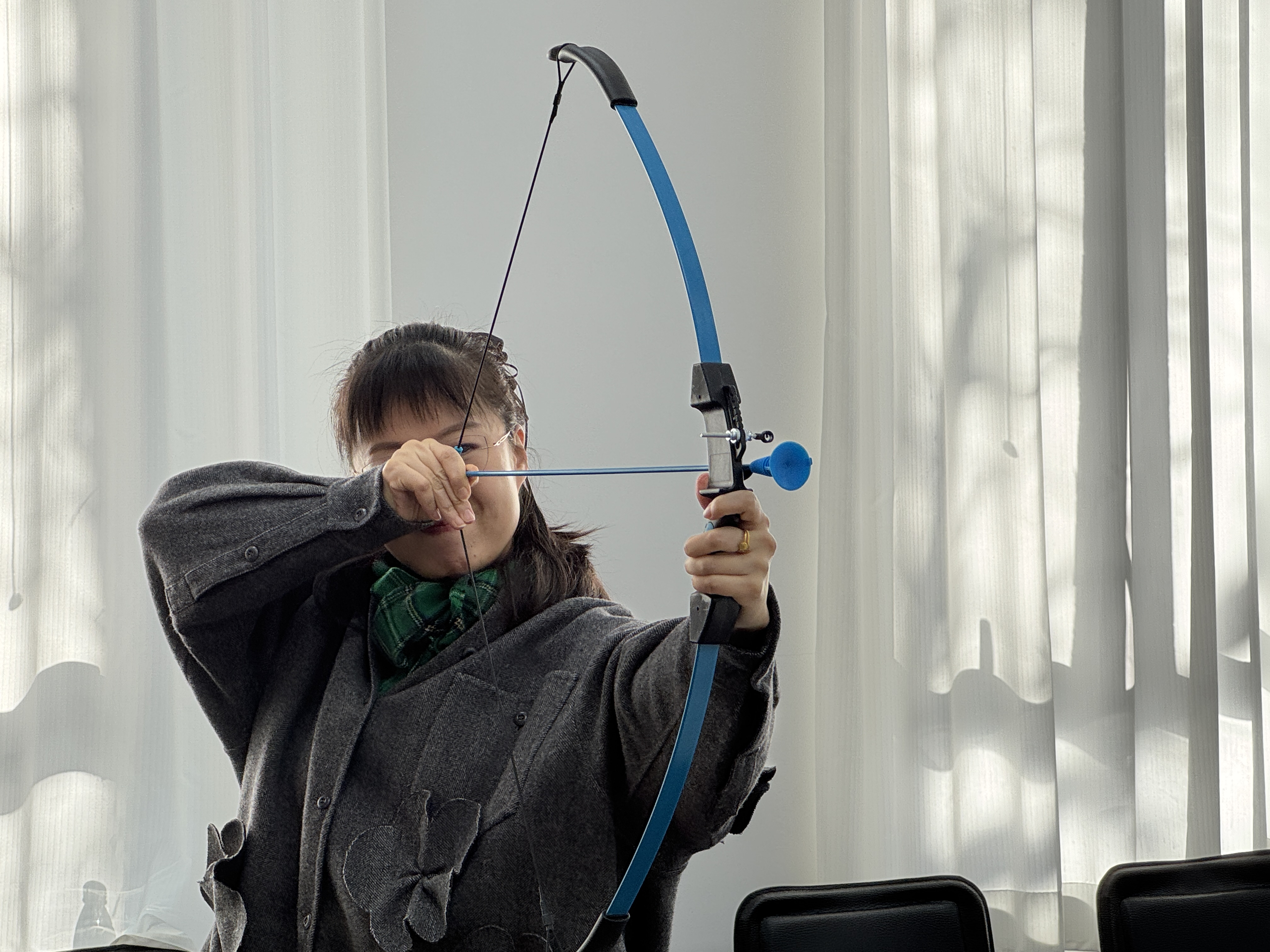 祝福仪式之后,迎来了生日会的互动环节——射艺比拼。参与老师了解弓箭的竞技规则,体验射艺文化,领取书签作为纪念品。