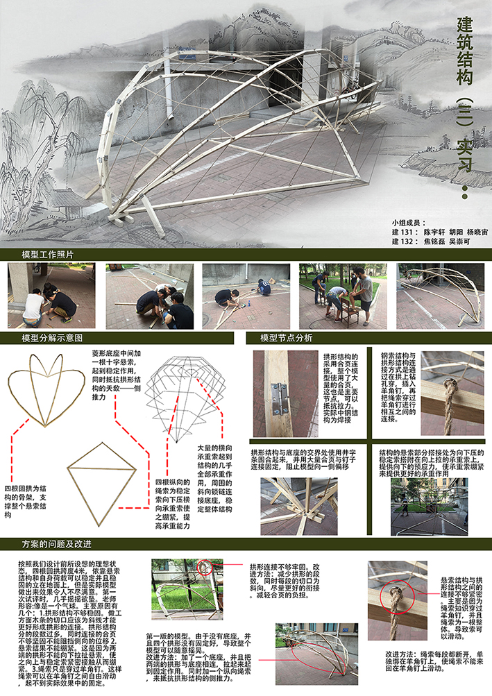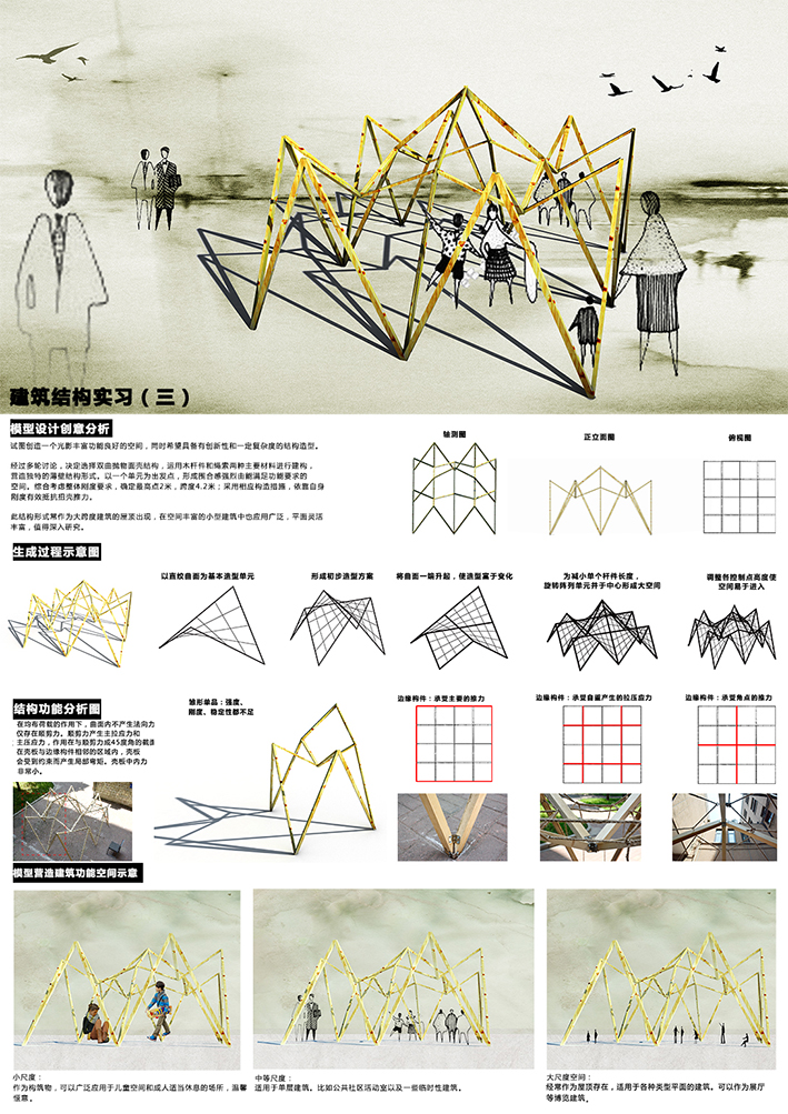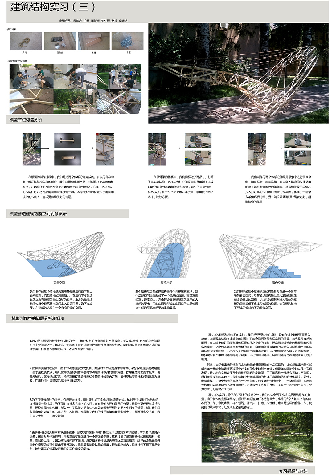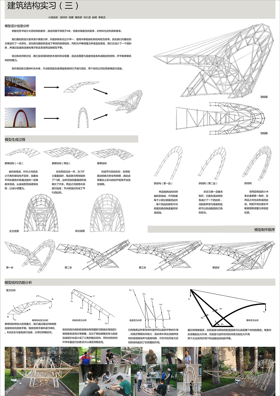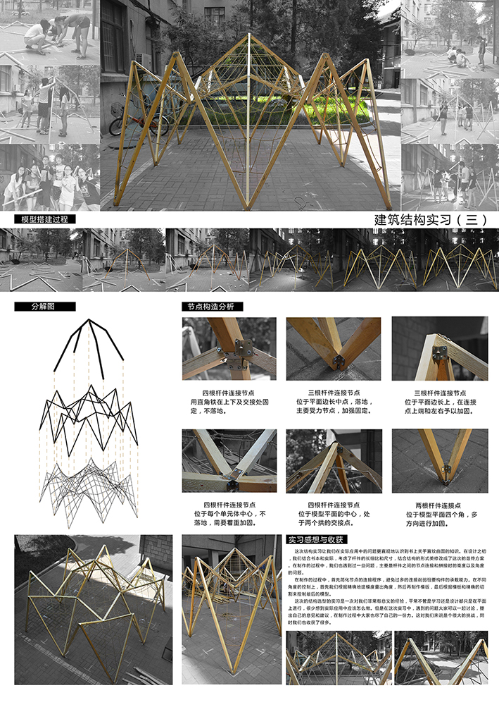 以下为大三建筑学专业的同学们简洁、有效、有创意的结构模型制作过程和成果集锦。