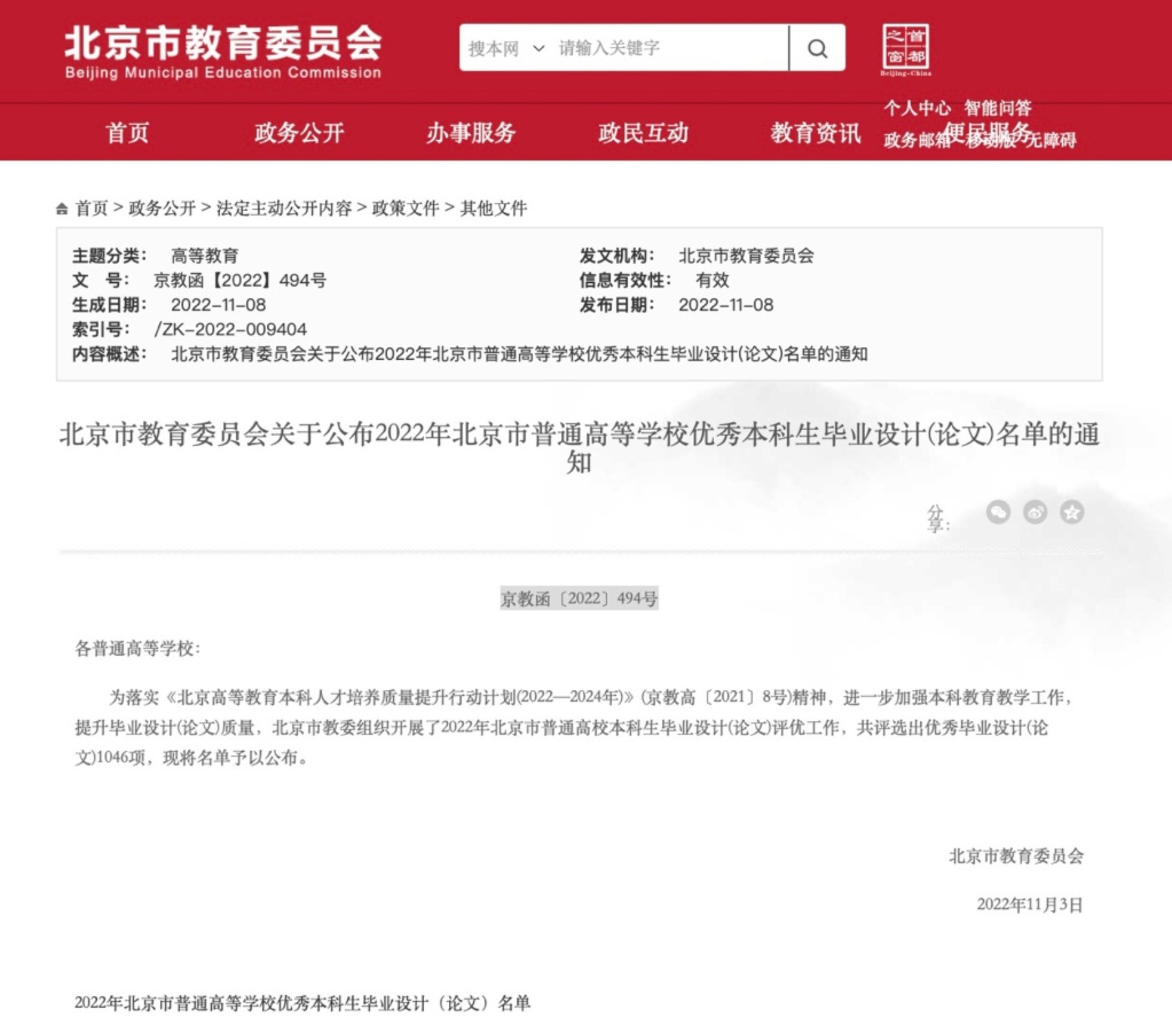 根据北京市教育委员会关于公布2022年北京市普通高等公司优秀本科生毕业设计(论文)名单的通知(京教函〔2022〕494号),公司yl7703永利荣获得两项优秀毕业设计大奖。