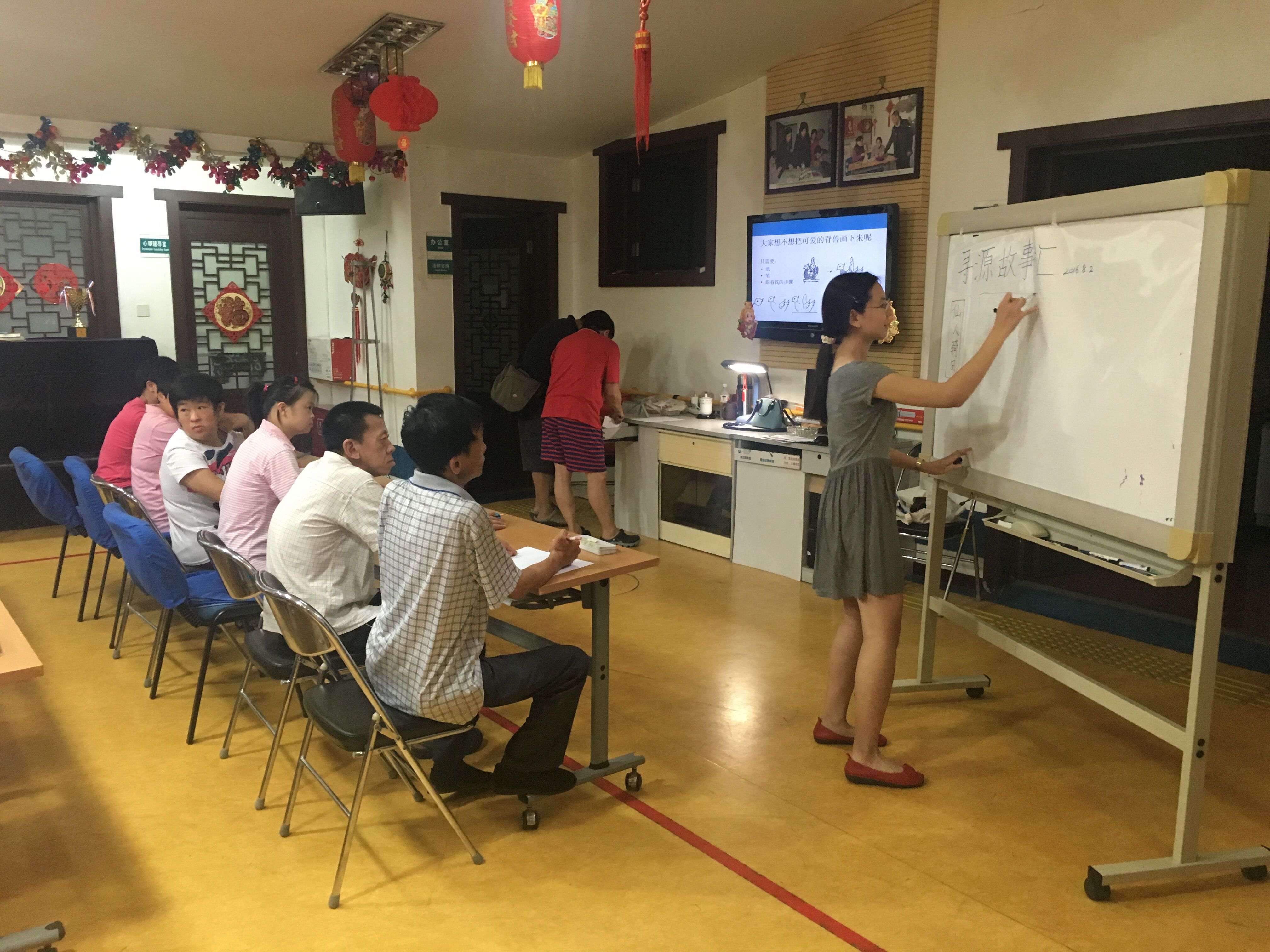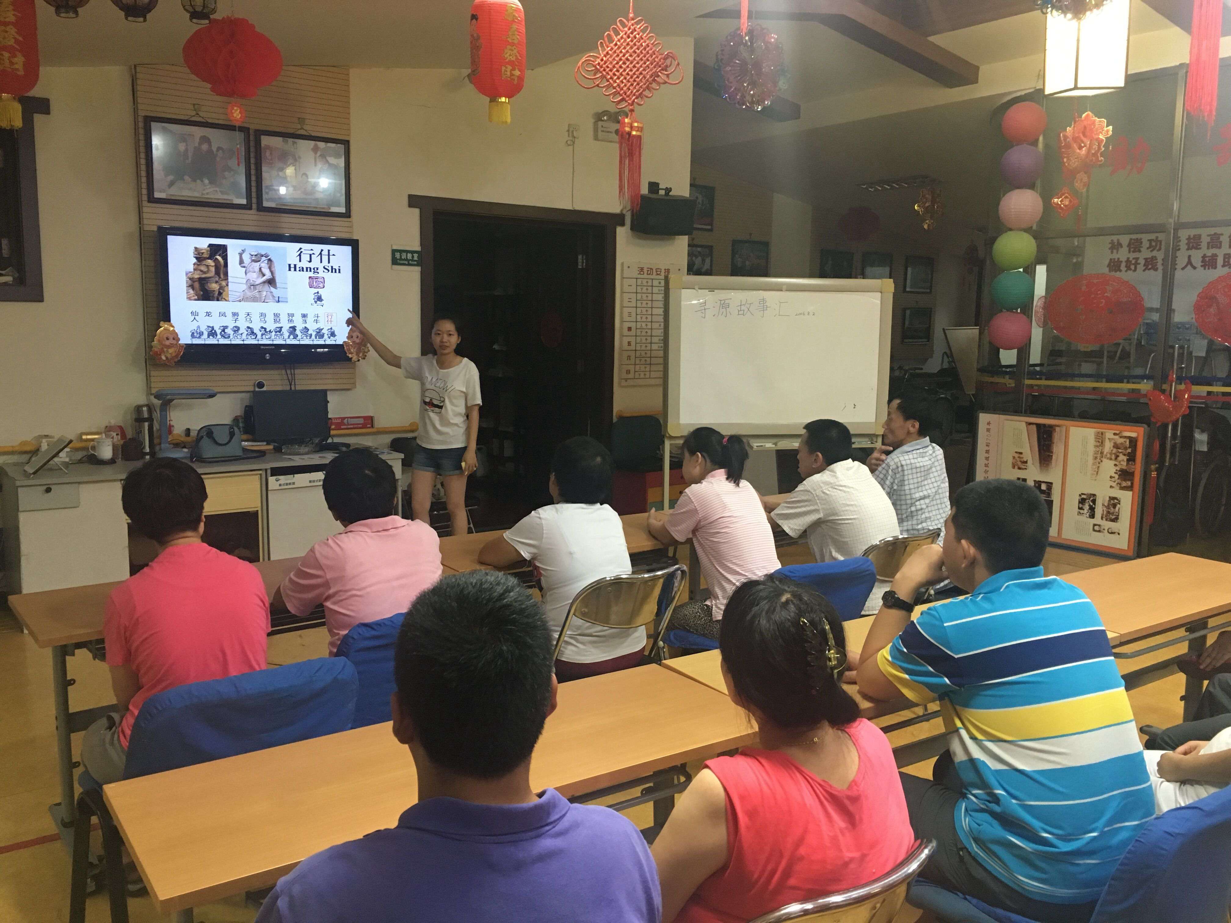 本次志愿服务同样分为文化宣讲和互动两个环节,为了增强知识的趣味性,志愿者张尧鑫同学特意以古建筑的“脊兽”为讲解内容,介绍了不同的脊兽的外在特征、性格特点以及寓意。伴随着幻灯片上的图片和志愿者形象的肢体语言,一个个小兽仿佛活灵活现地展现在大家眼前,让护国寺社区在场的残疾人朋友们听得津津有味。为了方便残疾人朋友们学习记忆,志愿者同学更是有心地将脊兽分为仙人与走兽两大类,走兽又分为龙凤虎、天马海马等三组。在后期提问的时候,大家都能较好地记忆并理解脊兽们,收获了良好的效果。