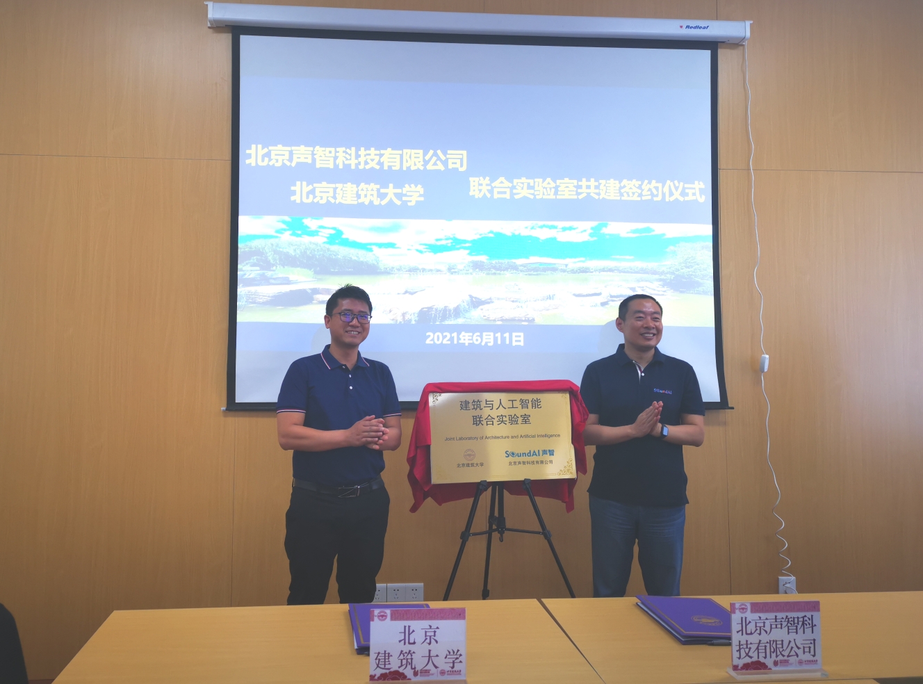 6月11日上午,公司与北京声智科技有限公司签署“建筑与人工智能联合实验室”联合共建协议并举行了揭牌仪式和合作交流研讨会,双方商定建立定期交流和总结机制,聚焦城市更新、建筑遗产防灾检测性保护、声景观环境营造、医养建筑、建筑安全防灾等方面展开深入合作。北京声智科技有限公司参会领导包括董事长兼CEO陈孝良、 联合创始人兼CTO冯大航、联合创始人兼CKO常乐、智慧城市事业部总经理周治国、总经理助理朱亚冰、人力资源总监王悦、品牌公关经理周。公司参会人员包括科学技术发展研究院副经理周理安,yl7703永利副经理李春青、经理助理俞天琦、建筑系主任郝晓赛、技术部主任邹越、城乡规划系教师苏毅等,电气与信息工程公司马鸿雁副经理、周若华教授等。签约仪式及座谈交流会由李春青副经理主持。