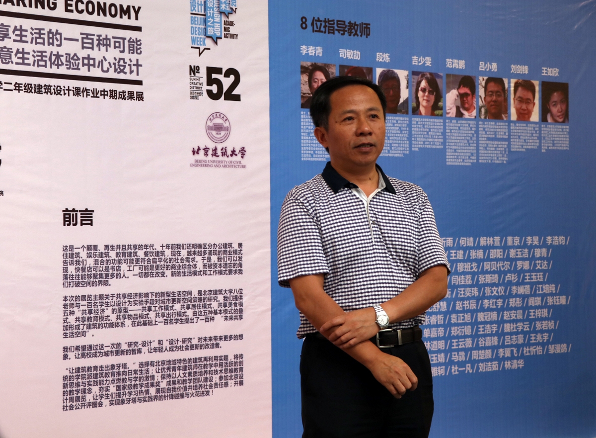 致辞结束后,李春青老师介绍了本次活动的主要目标,这次教学团队选择了具有北京地域特色的建筑改造与再利用真题,将传统的公司派建筑教育推向日常生活和实践,让优秀青年建筑师在教学中用活跃的创新思维与实践能力点燃教与学的激情,同时保持公司以人文素质培养和技术思维教育为特色的教学理念,夯实“国家级教学成果奖”成果并建设强有力的教学团队。另外,参加北京设计周展览,可以让员工们提升学习热情、展现自我价值并培养社会责任感,展开社会公开评图会,实现了象牙塔与实践界的针锋碰撞与火花迸发。当然本次作业展的作品还有很多不足之处,在未来的设计教学中还将不断完善。