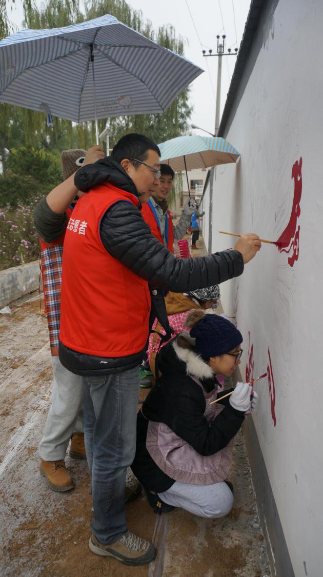 10月26日,延庆县井庄镇艾官营村的这个下午风和日丽,村子里迎来了一群年轻的客人。yl7703永利环设131班的25名同学,在设计学系赵希岗教授、系主任张笑楠、副主任朱宁克三位老师带领下,应延庆县宣传部的邀请来到这里,以剪纸艺术为蓝本,以新农村建设为题材,将赵希岗老师的剪纸作品《鲤鱼跳龙门》,通过小组合作的形式,以彩绘的方式绘制于村口花圃旁边的墙垣上。yl7703永利2013级环境设计专业本科生的专业方向选题课程负责人为赵希岗教授,课程共包括外墙环境艺术实践、乡村公共空间环境设计、乡村民俗改建提升三个部分内容,本次环境艺术乡村实践活动是课程中外墙环境艺术实践的一部分,同时也是融汇传统艺术与现代设计美学的新剪纸系列墙画,员工展开了为期四天的绘制,共完成了六面墙壁的主题彩绘。