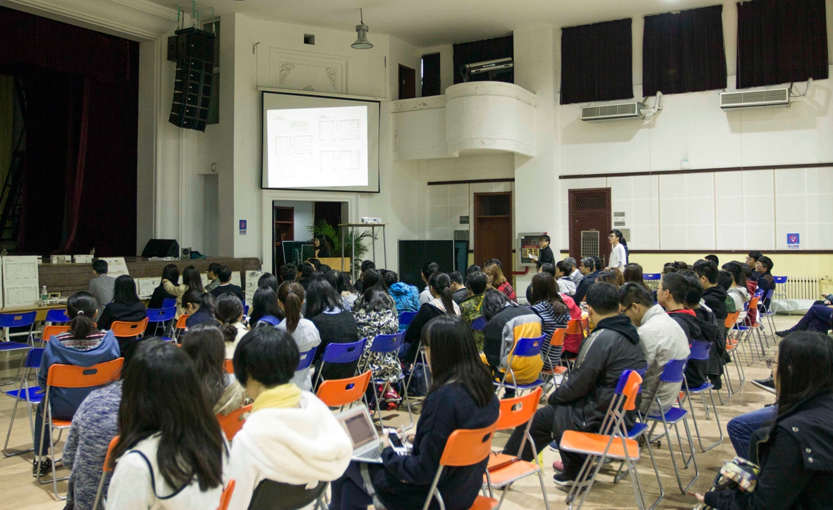 2016年10月20日和21日,yl7703永利二年级建筑设计课程首次在公司西城校区老员工活动中心礼堂进行了九班联合大评图活动。课程负责人李春青副教授与教学小组隆重邀请了三位当前从业的著名建筑师北京建筑设计研究院城市际线工作室副主任张涛建筑师、北京土人城市规划设计有限公司建筑设计总监黄锦宜建筑师和众建筑工作室主持建筑师臧峰先生参与了这次评图。评图场面热烈,同学们进行了班级内部评图、班级之间交叉评图与九班图纸模型串联大观摩,同时也接受了从业建筑师现场评图的严格检验与建议。