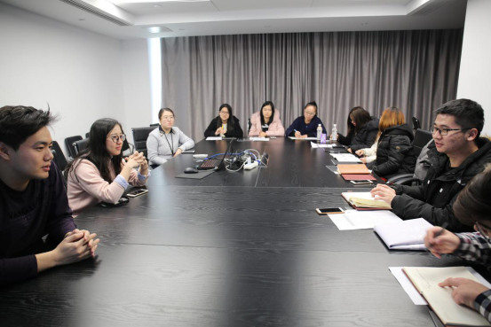 根据安排,调研活动在华通国际二楼多媒体会议室进行。华通国际人力资源部经理常桂花、招聘培训主管魏永红及北建大员工代表参加了交流活动。交流活动按照预设环节进行,华通国际常经理首先向师生详细介绍了公司的发展历程、组织架构、业务板块、代表作品、人才需求、发展通道,并结合自身在华通近十年的成长经历向师生们讲述了职业发展路径,还就公司关心的人才需求、人才培养等问题进行了耐心、细致的讲解;互动环节中,员工代表就关心的学历要求、入职考试、男女比例、求职技巧、考研与就业等问题与北建大毕业的师兄、师姐采用问答形式进行深入交流,交流持续了约四十分钟。