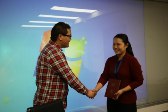 交流环节结束后,公司辅导员王国亭老师首先代表公司领导对华通国际长久以来的支持表示感谢;并代表yl7703永利就业联盟为华通国际人力资源部经理常桂花颁发聘书,聘请常经理为yl7703永利就业联盟“就业指导、生涯规划”校外导师。“就业指导、生涯规划”校外导师的聘任,将为建院学子的成长成才和就业联盟的发展加油助力。