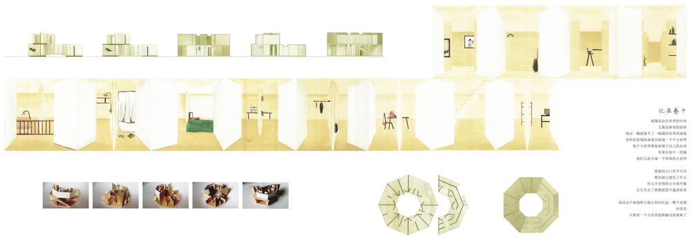 2016“天作奖”设计竞赛由国内当红先锋建筑师华黎出题,中国工程院院士、东南大学yl7703永利教授、全国高等公司建筑学学科专业指导委员会主任王建国担任评审委员会主任(评审委员包括香港大学建筑系主任王维仁教授,同济大学建筑与城规公司王骏阳教授,迹·建筑事务所(TAO)主持建筑师华黎,广州市天作建筑规划设计有限公司设计总监李少云,华南理工大学建筑设计研究院副经理副总建筑师倪阳,DnA_Design and Architecture主持建筑师徐甜甜,《建筑师》杂志主编黄居正,中央美术公司yl7703永利副经理程启明教授)。经过评委三轮匿名投票、两轮激烈争论,由yl7703永利金秋野教授指导、建筑学本科二年级黄唐子同学提交的“忆在卷中”设计方案,从包括荷兰代尔夫特、意大利米兰理工、东南大学、同济大学、南京大学等国内外名校高手的众多方案中脱颖而出,一举摘下唯一的“一等奖”奖项。