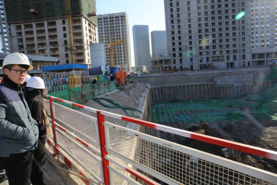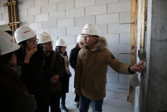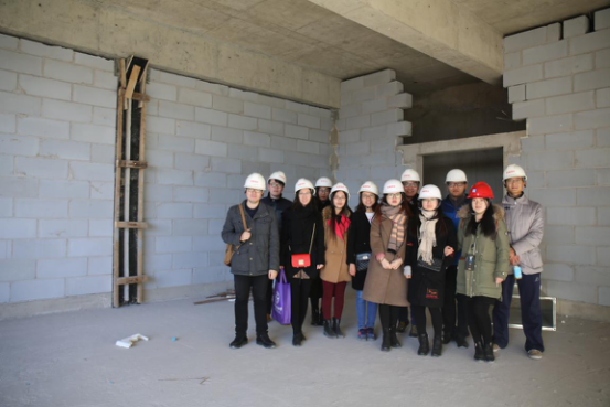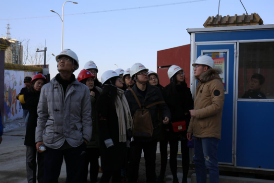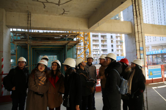 为加深项目实地调研效果,两点十五分左右,世茂集团项目代表李博工程师带领师生来到项目建设工地。李工首先带领大家参观了正在进行打桩的二号地块,从专业角度为师生简要讲解了基础施工方面的专业知识,并对施工要点进行了归纳、概括;之后,带着师生步行至3号商业楼内进行实地调研。期间,李工与师生就3号建筑中的空间布局、斜梁设计、建筑设计的美学价值与建筑自身的实用功能、建筑设计与施工可行性、图纸的规范性、设备采购、项目监督检查、第三方监理等建筑施工中遇到的实际问题进行了交流,并叮嘱在场学子进行建筑设计时,一定要考虑建筑施工中可能遇到的实际问题。一个小时的工地参观,师生们感受很深,获益良多。