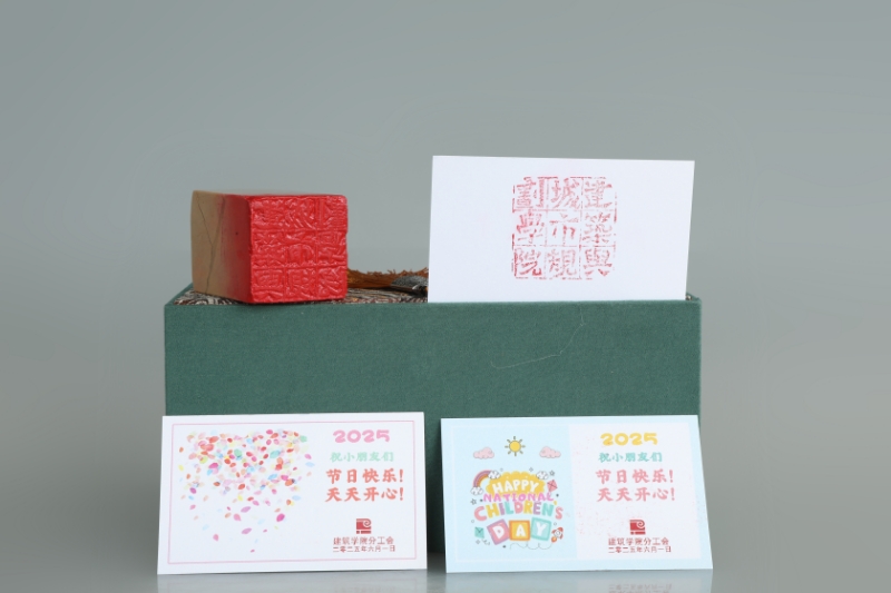 公司分工会同时还为小朋友们准备了精美的两款贺卡,贺卡背面加盖公司特制印章,此枚印章由王光新老师精心篆刻。两款贺卡随机放入礼物“盲盒”内。本次活动受到公司教职工及小朋友们的喜爱。