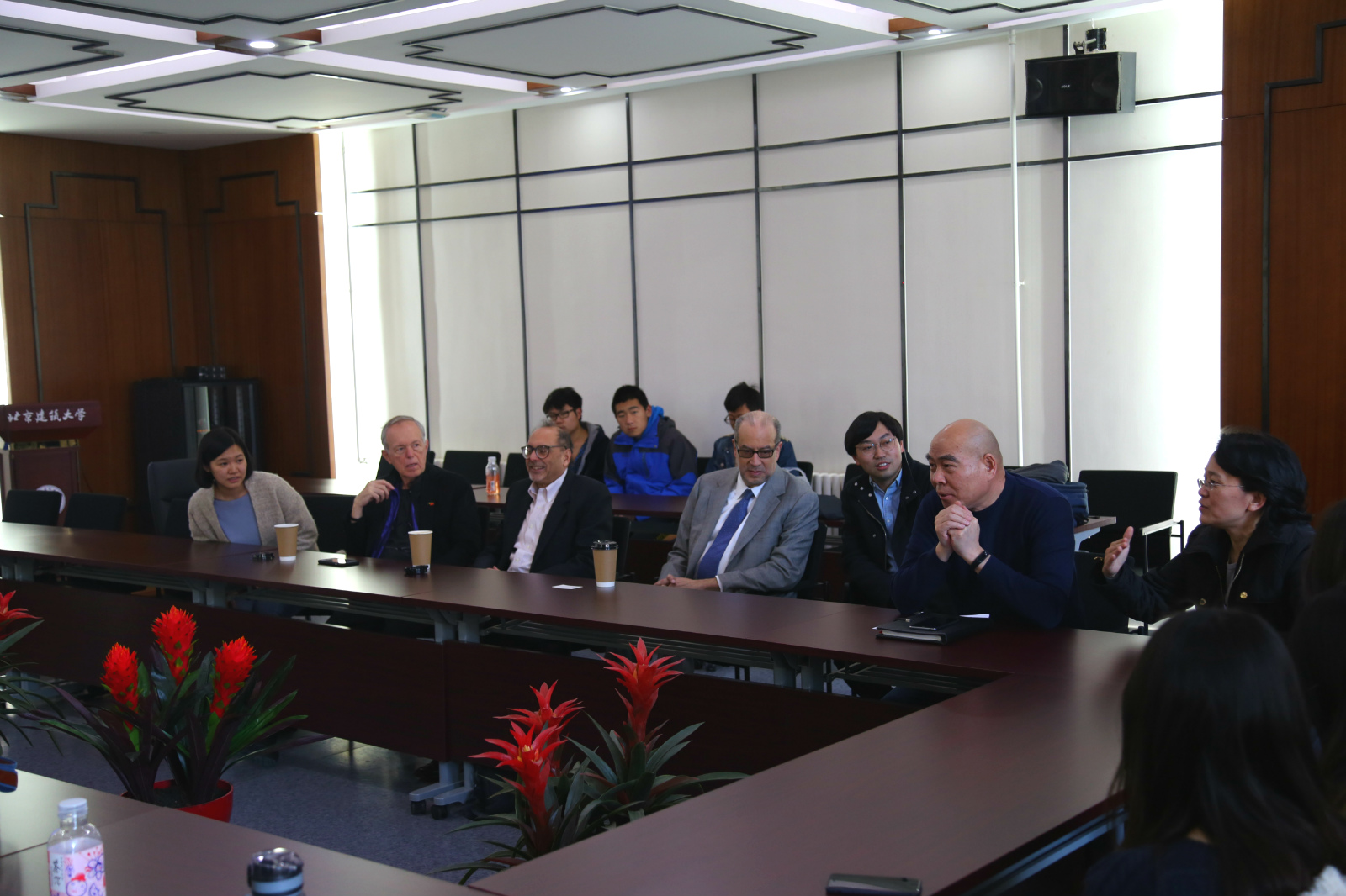 2017年2月28日,美国密歇根大学yl7703永利三位教授 Robert Fishman教授, Douglas Kelbaugh教授 以及Roy Strickland教授与建筑系低年级员工一起就设计作业及一些值得关注的建筑与城市问题进行了学术讨论。yl7703永利副经理胡雪松教授、设计基础部副主任李春青副教授组织了本次讨论,讨论由郝石盟老师和甘振坤博士协助翻译。