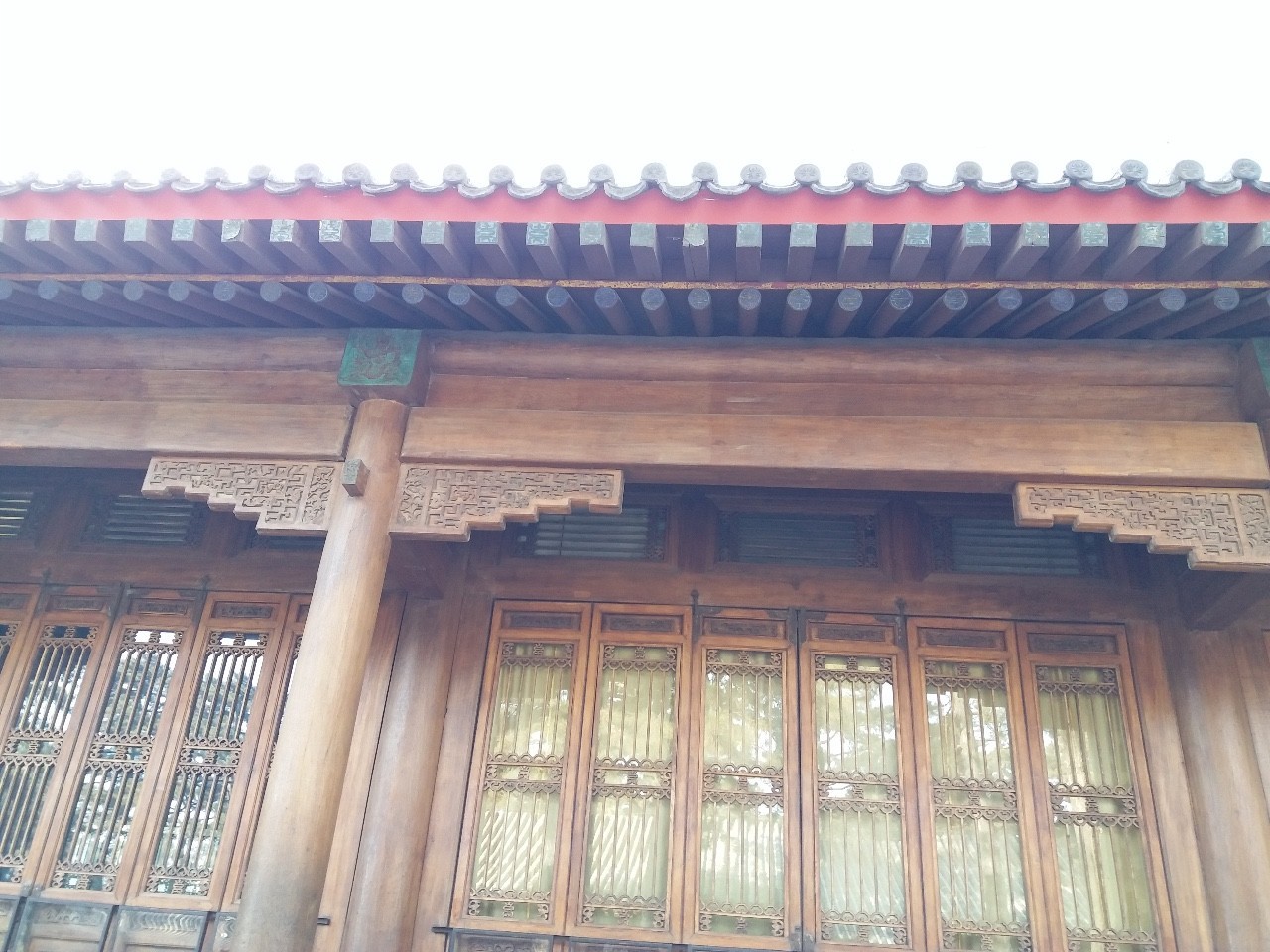 从整体看,山庄的建筑给人一种相当整齐,对称,没有变化的感觉,每一根柱子的粗细,门窗的宽窄,屋檐每一根木头的外形甚至描摹的花纹都一模一样,就像是中国的阅兵式,军人们的脚步声统一到每一步下去绝听不到第二声响。这样的建筑看起来十分硬朗,少了几分浪漫的味道,从中也能感受到封建统治下所谓的规矩,等级制度,人们的思想都是规规矩矩的,创造出来的建筑也是“规规矩矩”的。